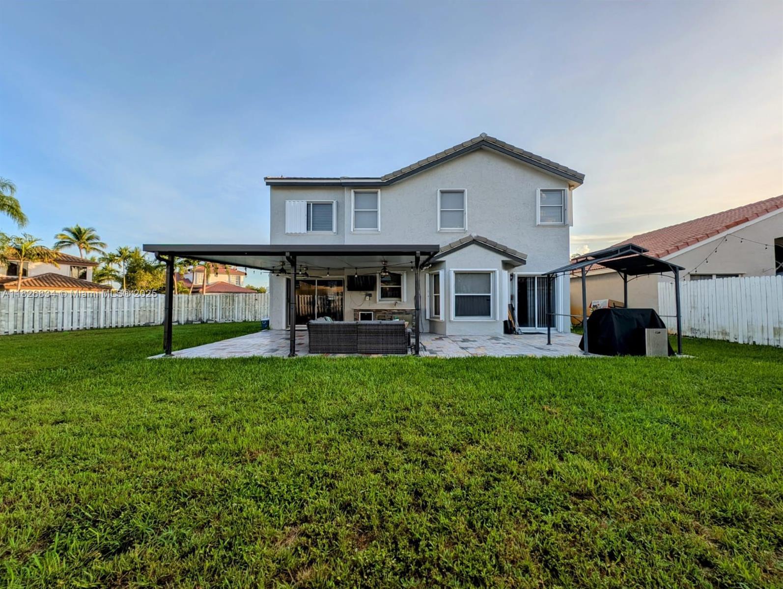 Welcome to this stunning 4-bedroom, 2.5-bath residence located in a quiet and desirable neighborhood. This home features a fully remodeled kitchen and bathrooms, complete with stainless steel appliances and modern finishes. Enjoy peace of mind with a brand-new roof, hurricane shutters, and fresh paint inside and out. But the real gem? The expansive backyard a dream for entertaining and playtime! It includes a covered patio with a mounted TV, outdoor sink, mini refrigerator perfect for family BBQs, birthday parties, or relaxing evenings under the stars.Located in a friendly, quiet neighborhood, this home checks all the boxes for families looking to grow and thrive. Don’t miss this opportunity! This move-in-ready gem combines comfort, style, and functionality — don’t miss out!