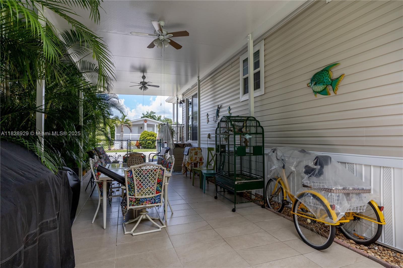 Welcome to this charming 55+ community! This 2020 double-wide manufactured home features an open covered porch and patio, perfect for relaxing and entertaining. Inside, you’ll find beautiful ceramic tile flooring throughout. The entire property is fenced in, offering privacy and security. Don’t miss out on this lovely home in a vibrant community!”