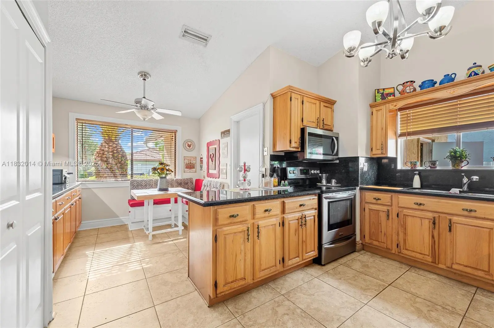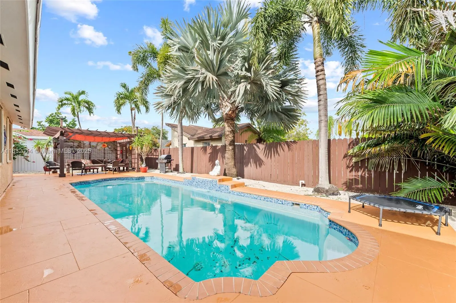 Charming 3BR/2BA single-story POOL home with 2-car garage located on a quiet street in desirable Palmetto Bay. Features soaring cathedral ceilings, a real wood kitchen with granite countertops, stainless steel appliances, and a bright breakfast area. The spacious living area flows into a tropical backyard oasis with a large heated pool, custom pergola with built-in seating, and a BBQ area—perfect for entertaining. Enjoy peace of mind with Zone X (no flood insurance required), storm shutters, and a removable pool fence. Located near top-rated schools: Howard Drive Elementary, Palmetto Middle, and Palmetto High. Conveniently close to parks, shopping, dining, and top hospitals. This well-maintained home offers the ideal South Florida lifestyle in one of Miami’s most sought-after communities.