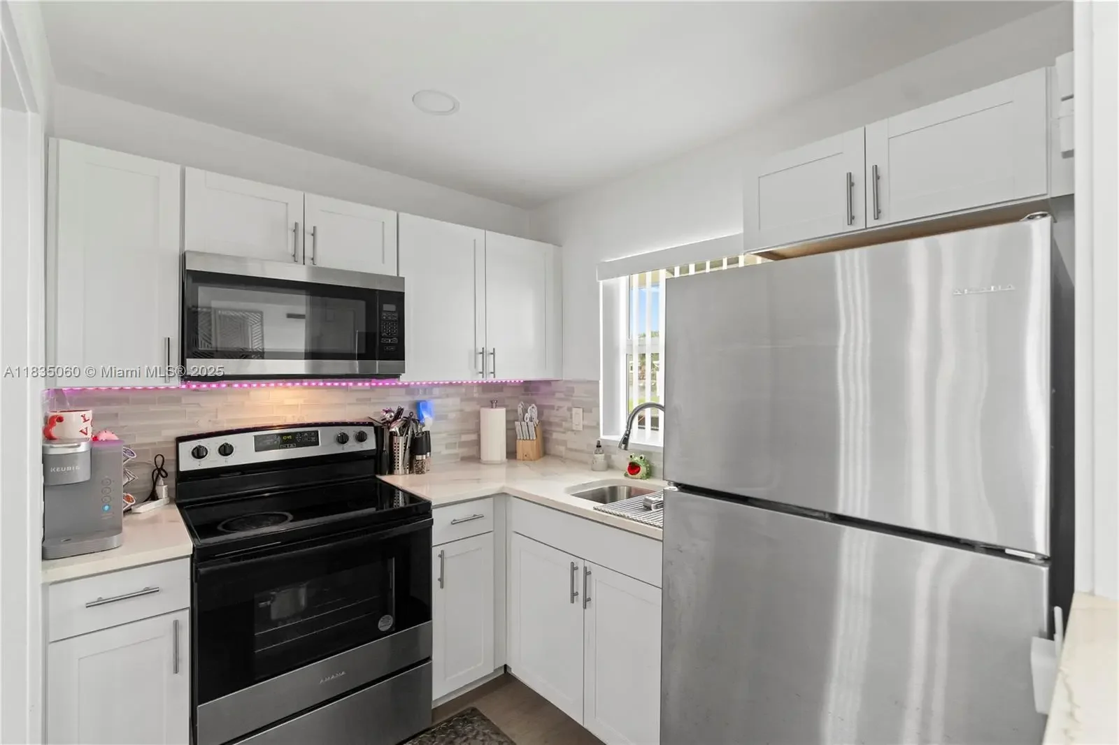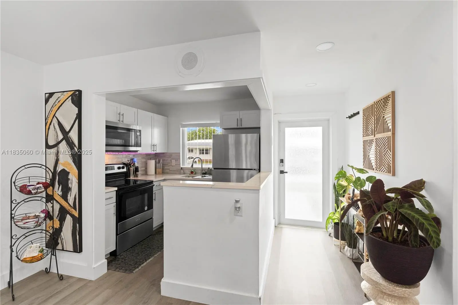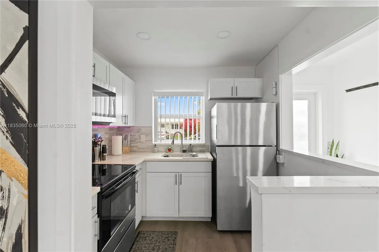 Looking for the perfect blend of comfort, style and affordability? Look no further! This beautifully renovated 2 bedroom 1 bathroom waterfront villa is truly a hidden gem! This home features newly installed hurricane impact windows and doors (2024), a newly renovated kitchen equipped with stainless steel appliances, quartz countertops and shaker cabinets, newly installed vinyl wood flooring, fresh paint, newer water heater and ac (2017). The backyard is a tropical oasis complete with a breath taking lakeview as well as mango trees providing prime relaxation and perfect for entertaining. This home is located just steps away from the newly renovated Caporella Park. Schedule your showing today!