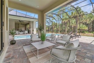 Nestled on 2.5 acres of 100% upland in Golden Gate Estates, this home offers luxury, privacy, and functionality. Featuring an open layout with soaring ceilings, modern finishes, and a living room with a custom feature wall, gas fireplace, wet bar, and built-ins. The kitchen includes a hidden prep area and walk-in pantry. The study with closet works as a guest room. The owner’s suite has a spa bath, outdoor shower, and direct access to the screened pool with fireplace and grill. No HOA and plenty of land to expand.