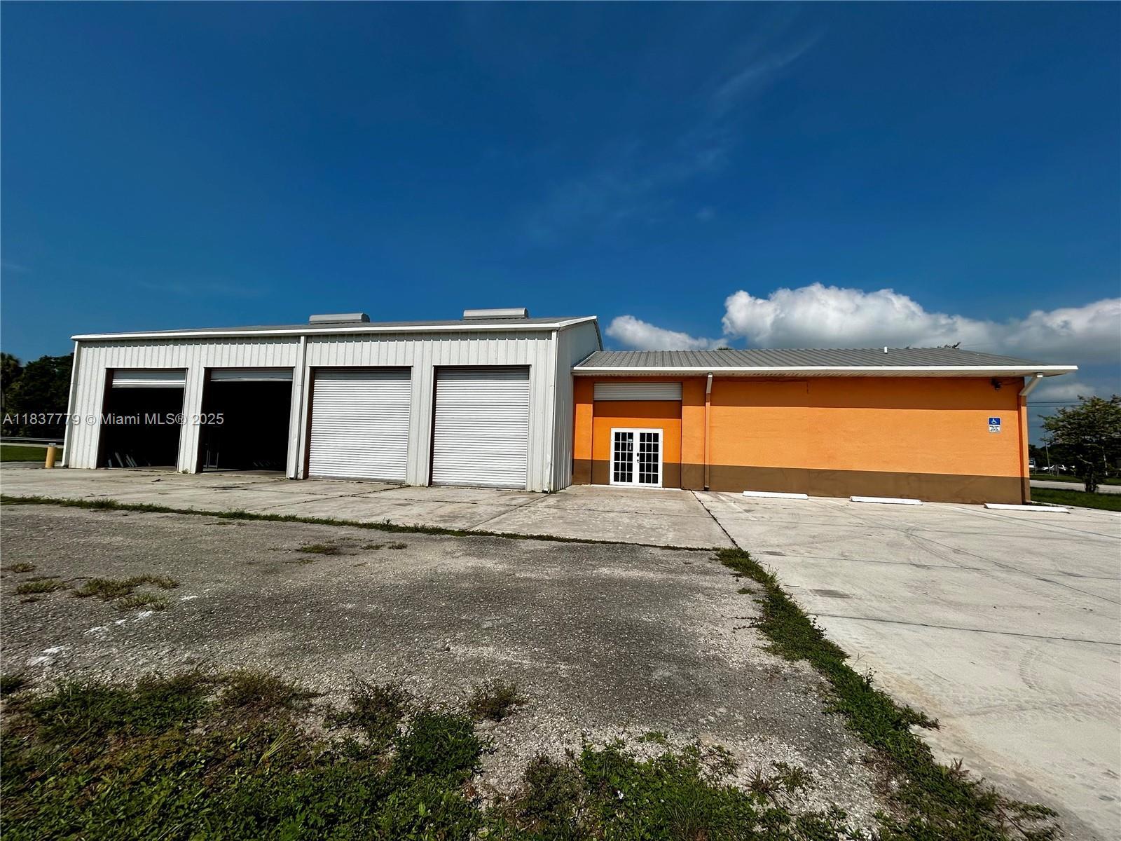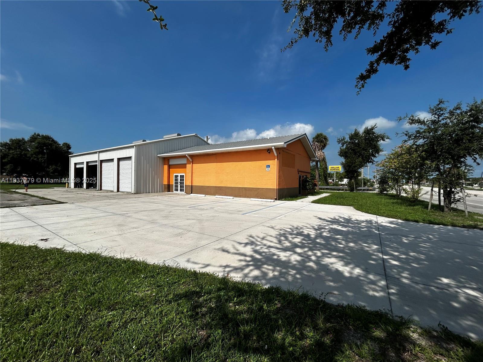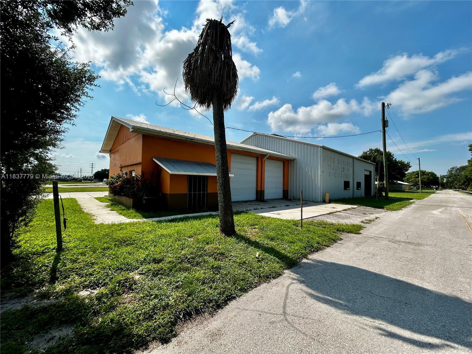 Prime corner location on busy Highway 70 in the heart of Downtown Okeechobee. Zoned Heavy Commercial. Includes reception area, office, warehouse with 5 roll-up doors, and space for showroom. Perfect for tire sales, repairs, auto accessories, or similar use. High traffic visibility and excellent exposure. Lease price is $5,000/month for the main property only. Optional rear lot available separately. All measurements are approximate and should be verified with Okeechobee County