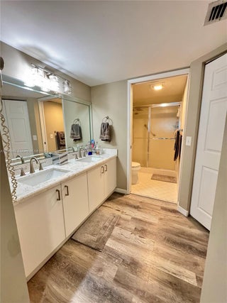 Large 3rd floor corner unit recently remodeled with new kitchen cabinets, quartz counters and stainless steel appliances. This condo features 2 bedrooms with walk-in closets and 2 updated bathrooms. Association fees include water, trash, basic cable, internet and many amenities including clubhouse, gym, tennis courts, pools, and more. Please allow 24 hour notice to show unit.