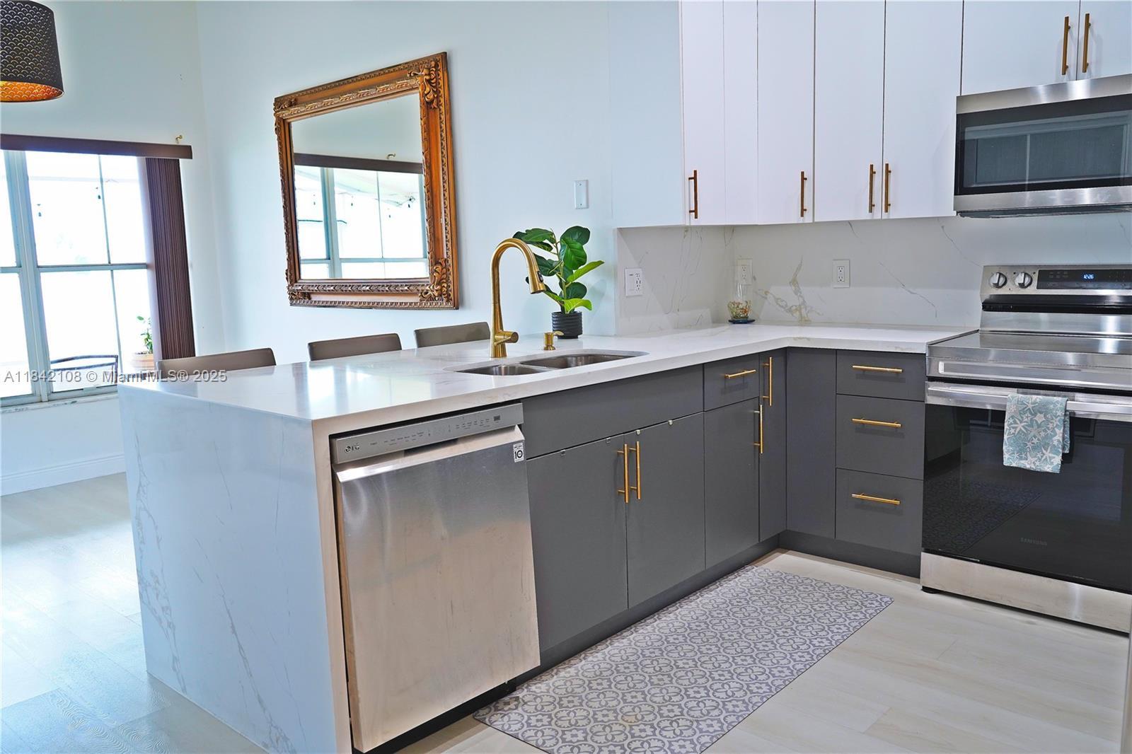 PRICED TO SELL! SELLER MOTIVATED! Fall in love with this stunning turnkey lakefront home 3 bedrooms + flex and 2 bathrooms, in the gated Hidden Lake community! Enjoy a fully remodeled kitchen with quartz countertops, an elegant updated master bath, and beautiful lake views right from your kitchen window. Bright open layout, soaring ceilings, and modern vinyl and wood floors, no carpet anywhere! New AC units. Step outside to a spacious screened yard with direct lake views, perfect for relaxing sunsets and entertaining. Low HOA includes cable, internet, pool, tennis & playgrounds. Zoned for A+ schools, prime location, and upscale finishes, this home has it all!