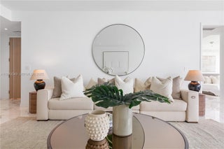 Ritz Carlton Residence in Sunny Isles Beach. Private foyer entry to a stunning 2 bed/2.5 bath+Den. The unit features a designer Italian kitchen, top of the line Gaggenau appliances, floor to ceiling windows and most breathe taking view of the ocean and South Beach Miami. The building offers resident services provided by the Ritz Carlton brand. Five star amenities include 24hr valet and security, concierge, restaurant, lounge, spa, two swimming pools, private beach club, kids club, wine lounge, and fitness center. This residence features luxury FENDI furnishings and has been partially staged by Vesta, creating a refined and sophisticated living space.