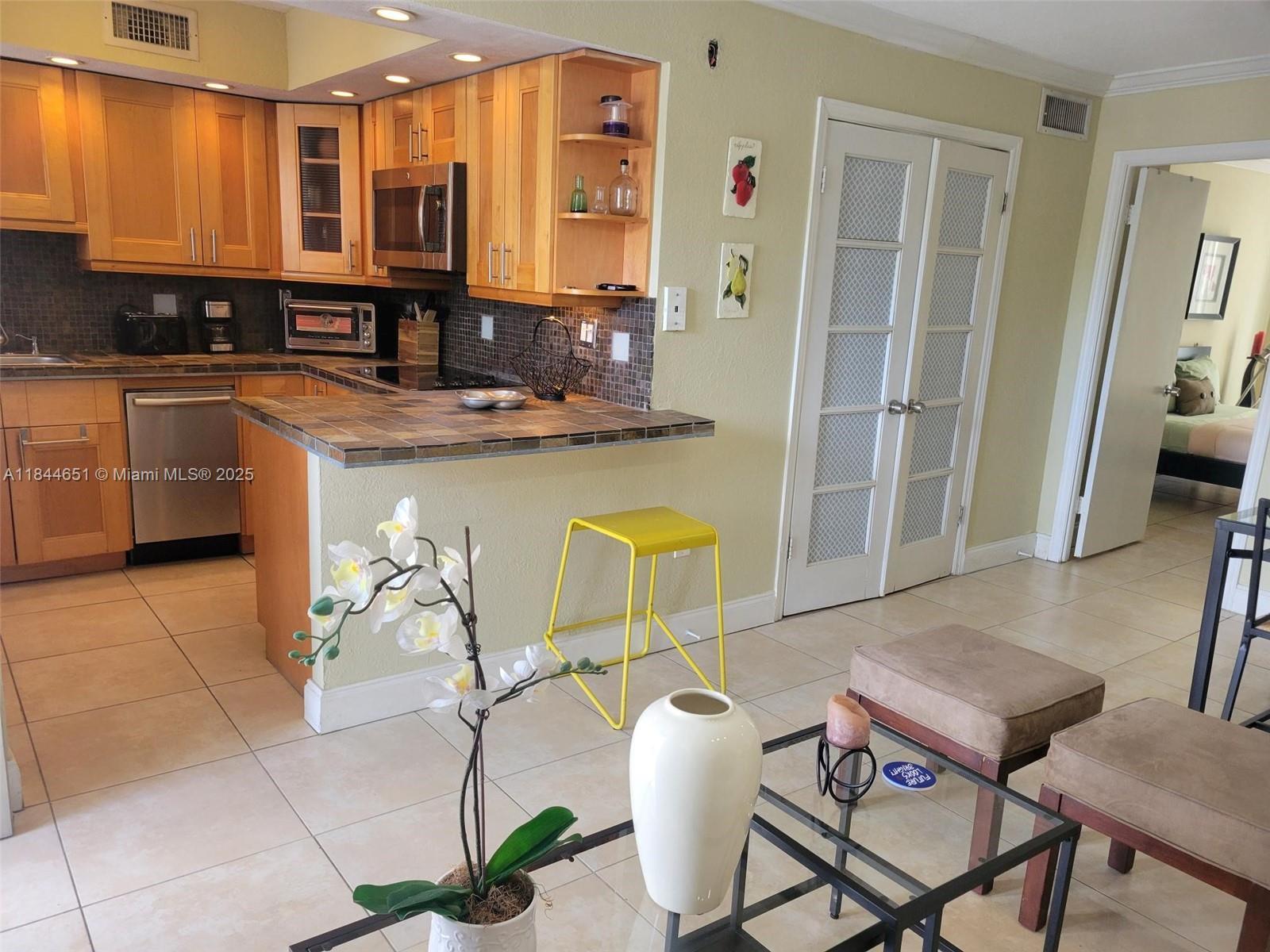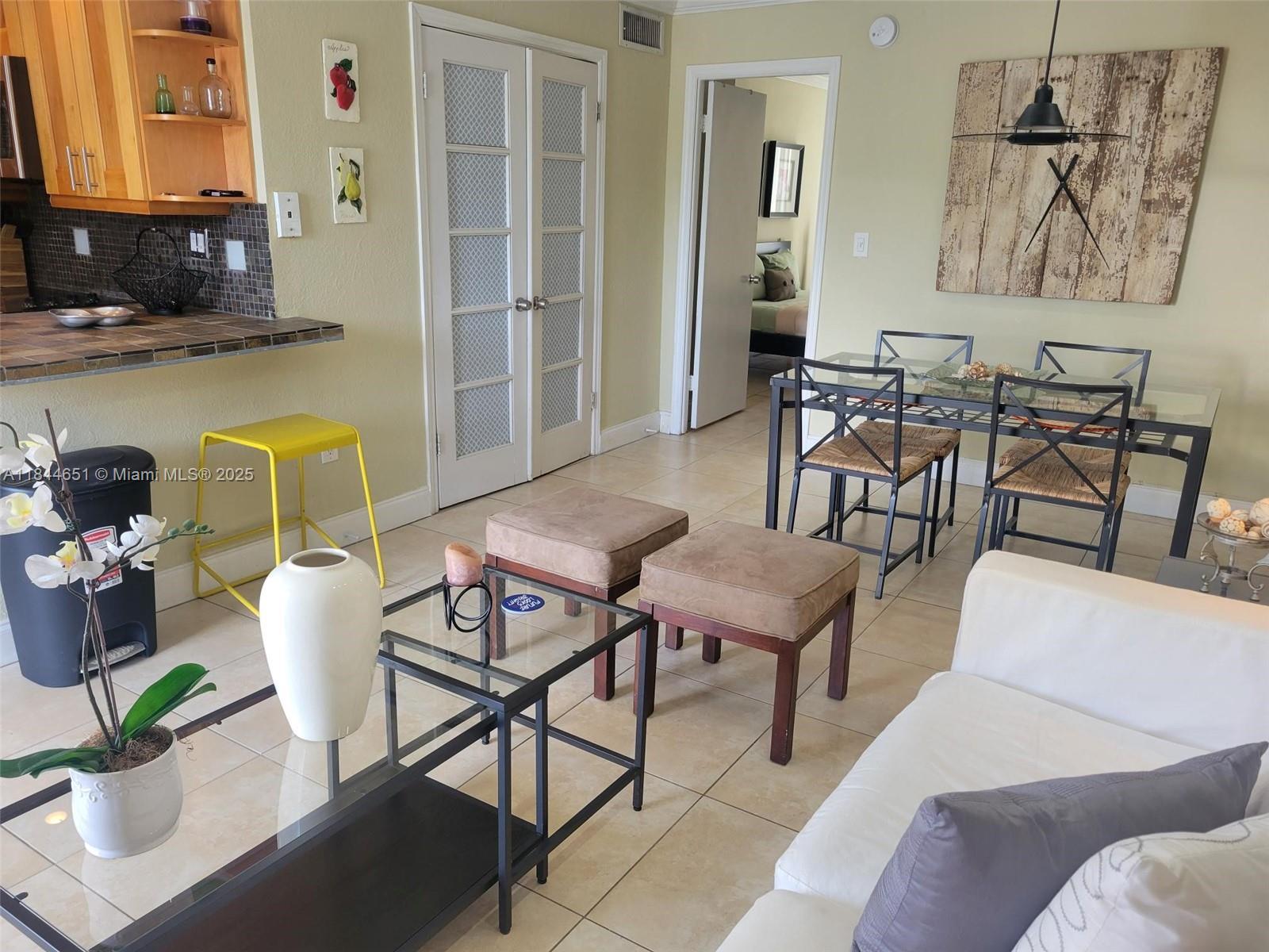 Price drastically adjusted for quick sale. Centrally located and very secure building, Gated with intercom for access. This one bedroom PLUS den currently used as office, this can easily be converted to a guess or kid's room. Unit is fully furnished and equipped with every kitchen item you would need. Ceramic floors, SS appliances, 2 nice closets. Property is sold As-Is. Only 24 apartments in building. No assessments in the horizon. Some cosmetics are currently being applied to the exterior and lobby. Easy to show, call listing agent. OWNER VERY MOTIVATED.