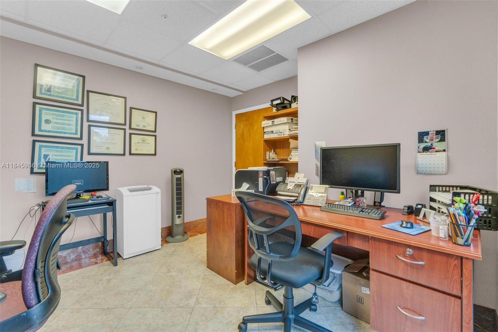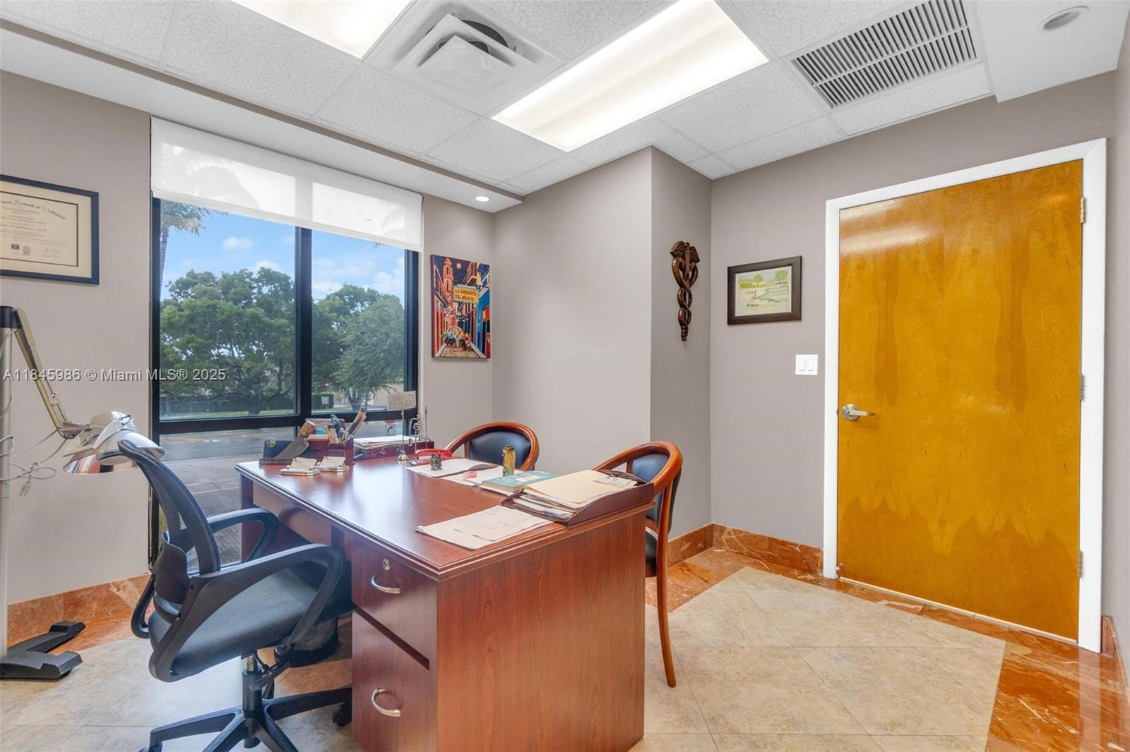 Class A Office Suite for Lease in Kendall West Professional Center. This well-designed Class A commercial office suite offers a professional and functional layout, ideal for a variety of business uses. Currently configured as a medical office, the space features a reception area, 8 private offices, 3 workstation areas, a private bathroom, storage room, and 2 separate entry doors for added convenience. The interior boasts tile flooring throughout and a versatile layout, perfect for medical professionals, accountants, attorneys, real estate offices, and more. The building features beautiful travertine floors in the common areas, new hurricane impact windows throughout, and available assigned covered parking. Elevate your business in a prime location.