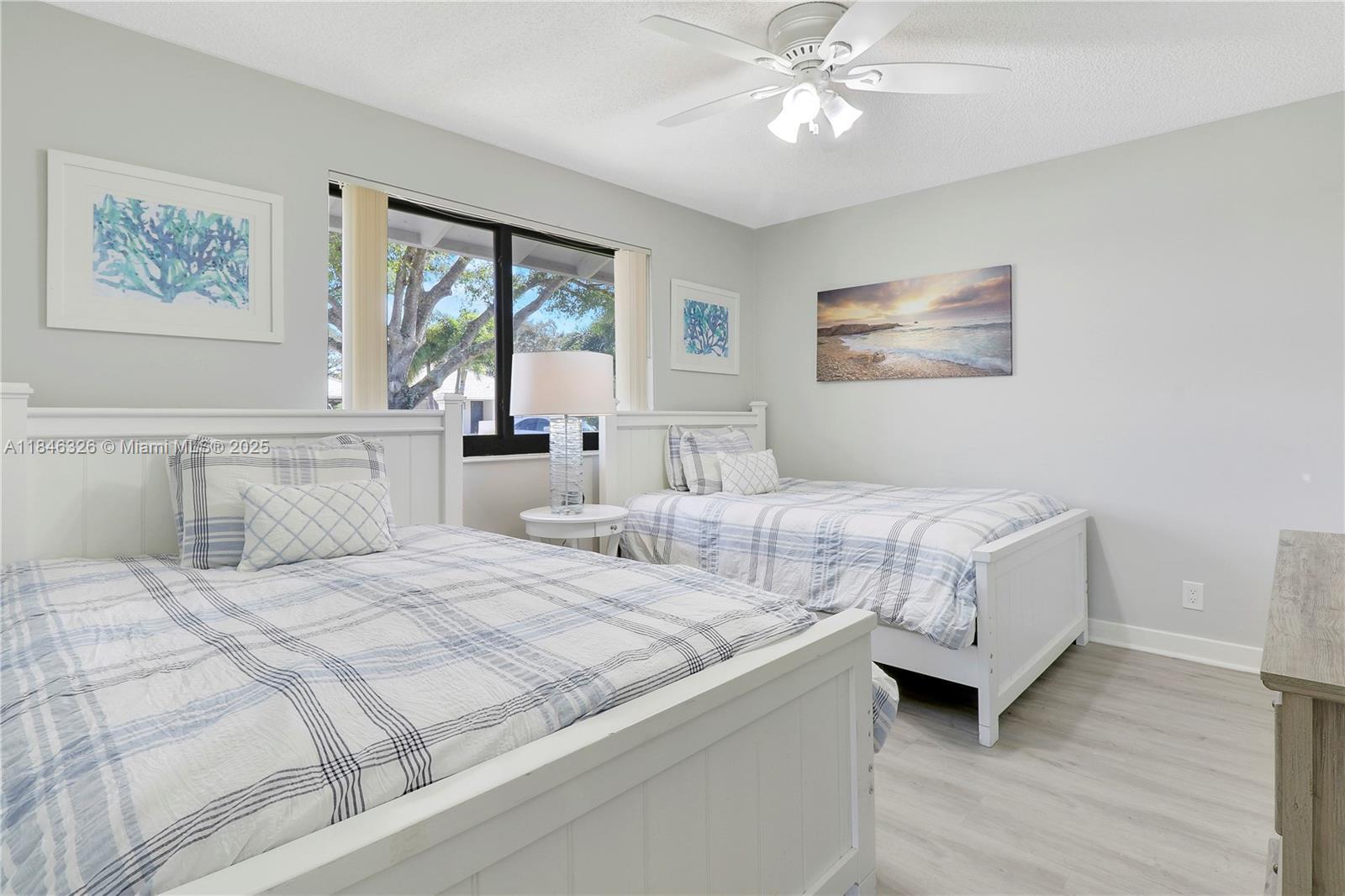 Welcome to this well cared for, clean and renovated residence located at 105 Club Drive in the prestigious PGA National community. This spacious open floor plan offers a light-filled living space adorned with high ceilings and updated finishes throughout. The clean, renovated kitchen with island seating is well equipped with all your cooking needs. The primary bedroom has a king bed, ensuite and large walk-in closet. Guest room has two double beds, and is right off the second full bathroom for guest conveniences. Washer/dryer in unit. Back patio offers a peaceful setting for dining al fresco or relaxing in the beautiful Florida weather. Just 15 Minutes from Juno beach and PBI airport and walking distance to PGA National Resort and Spa. Gaurd Gated community.