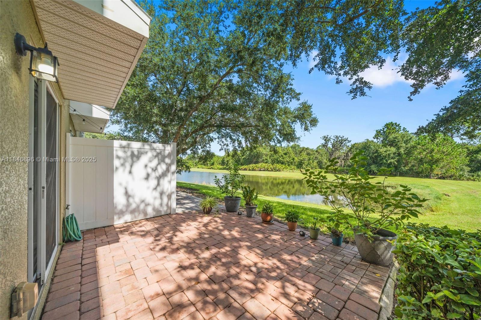 Move-in ready townhome in desirable Sawgrass Plantation featuring 3 bedrooms, 2.5 baths, and 1,531 sq ft of beautifully maintained living space. Enjoy a bright open layout, chef-style kitchen with granite counters and stainless steel appliances, and elegant tile flooring throughout the main level. The upstairs primary suite includes pond views, a walk-in closet, and a spa-like bath with dual vanities, soaking tub, and walk-in shower. Relax on the extended paver patio with lush landscaping and water views. Community amenities include pool, clubhouse, playgrounds, courts, and trails. Near Lake Nona, OIA, shops, and dining.