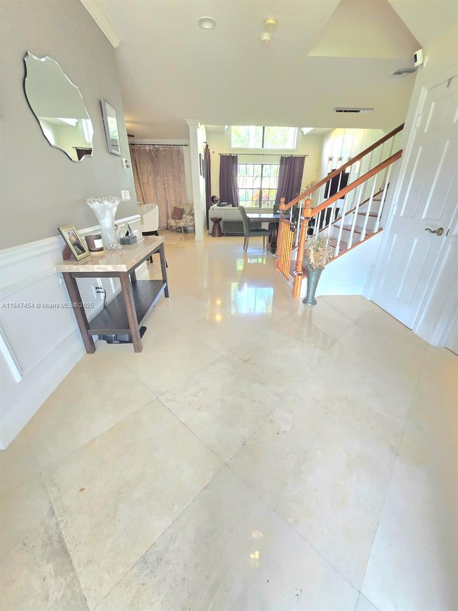 Spacious and updated 3-bedroom, 2.5-bath townhome with a one-car garage in the highly sought-after Deer Creek community. The first floor features sleek marble flooring for a polished look, while the second level is finished with rich wood floors for a warm, modern feel. The open-concept kitchen offers newer appliances and a seamless flow into the living area—ideal for everyday living and entertaining. Crown molding, high ceilings, and recessed lighting add a refined touch throughout. The primary suite includes a large custom walk-in closet, and the home offers ample storage space overall. Stylish, well cared for, and located in one of the area’s most desirable communities—this one stands out.