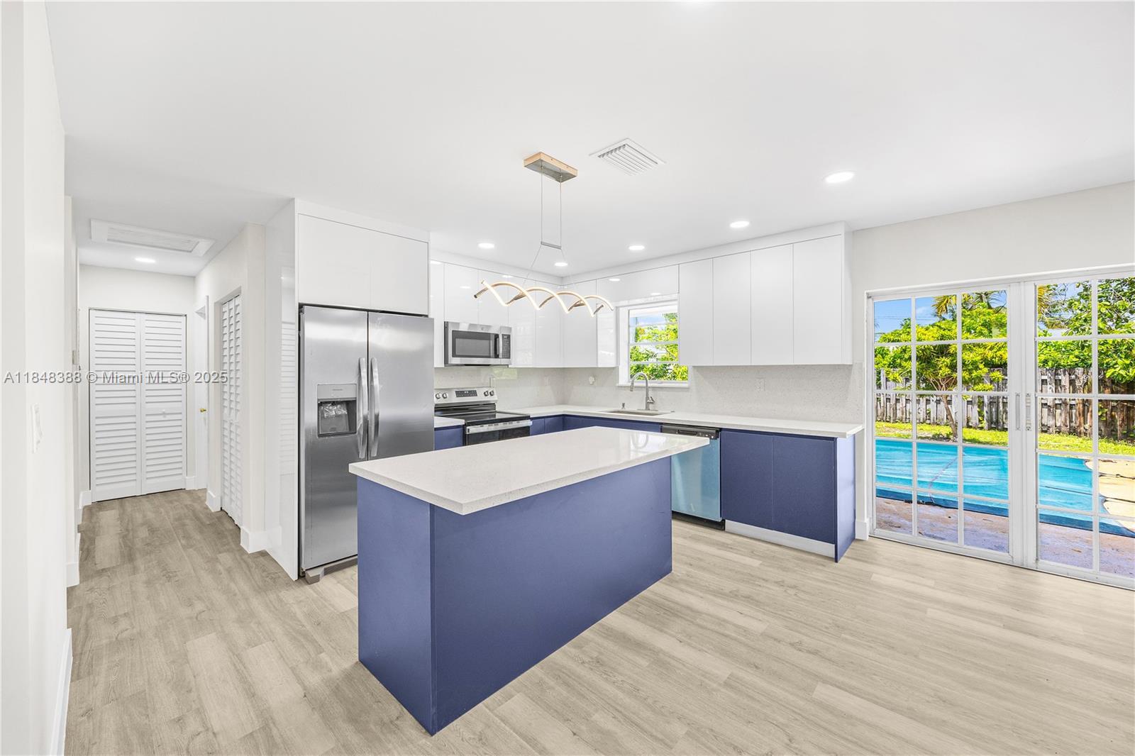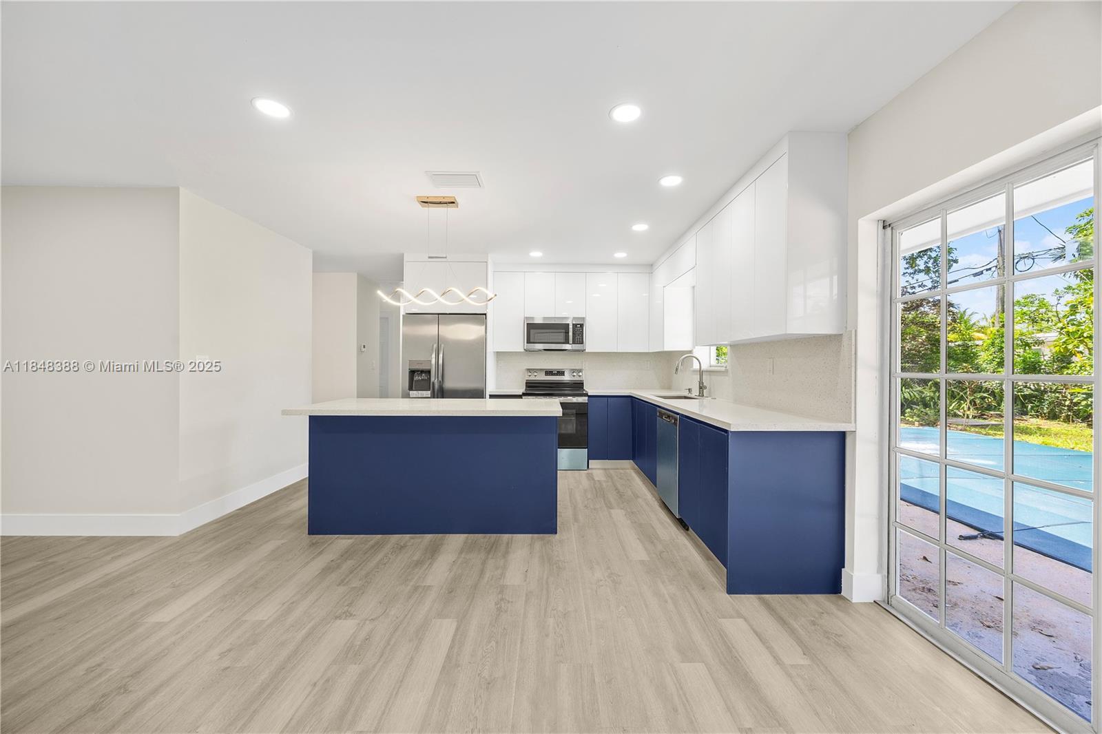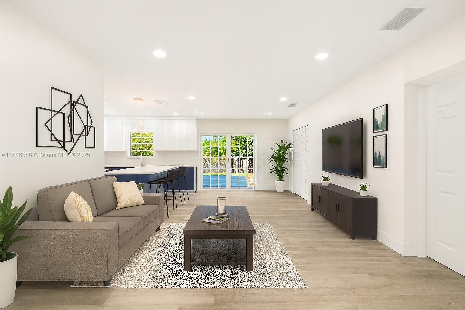 There is truly nothing like this in the area! Comparable to a brand-new build, it has been fully remodeled with city permits (closed and in process), including new plumbing, electrical, HVAC, framing, roof, and fencing. Secure it now—price will increase once permits are finalized.The home features 3 spacious bedrooms plus a Den, huge Master Suite with his-and-hers walk-in closets and enclosed toilet. 3 full baths, one of them is a convenient cabana bath for the pool. Enjoy the outdoors with a large fenced lot and sparkling pool, perfect for entertaining. Inside, the open kitchen boasts a large island, granite countertops, and brand-new stainless steel appliances. Located close to beaches, shopping, and I-95, a true standout. Owner is Listing Agent Related