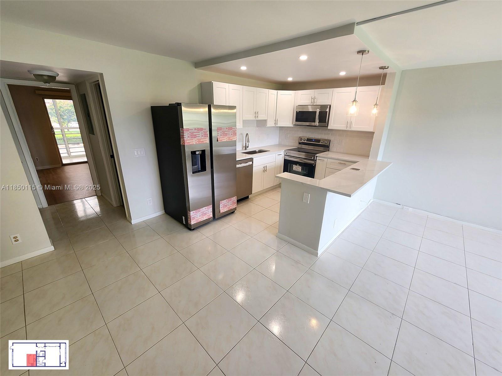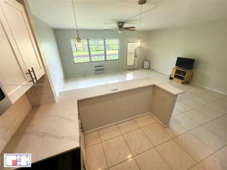 Welcome to this fully renovated 1-bedroom, 1.5-bathroom condo in the heart of Century Village. This bright and inviting second-floor unit offers modern comfort and serene views—perfect for relaxed Florida living. Fully renovated kitchen with Samsung appliances, including a stove, microwave, French door refrigerator with ice maker, dishwasher, and garbage disposal. Elegant quartz countertops, custom-made cabinets, and an eating countertop area. Spacious living area with a powerful 15,000 BTU Friedrich A/C. A bright bedroom leading to a balcony with a 10,000 BTU GE A/C. Main bathroom with a walk-in shower and custom glass shower doors. Elevator in building for easy access.
