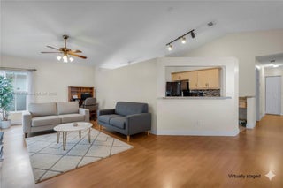 Best value in West Pembroke Pines! Price just reduced. This 3-bed, 2-bath Chapel Trail home is a rare find in an A-rated school district. Bright open layout with laminate floors, plus a flex space created from one side of the 2-car garage, while still keeping garage parking. Updated kitchen with granite countertops and newer appliances, spacious primary suite with a walk-in closet, and a large fenced backyard with no rear neighbors. AC 2019, low HOA with cable and internet, and resort-style amenities. Motivated sellers. Don’t miss this opportunity! Flex space.