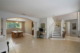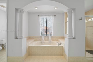 This beautiful home offers 5 bedrooms and 4.5 bathrooms, a private suite with its full bath—perfect for in-laws, guests, a home office, or a theater room. Boasting 4,294 sq. ft. of total construction. Custom-made, high-impact hurricane front door. Generous family and living areas filled with natural light. An open layout is ideal for both everyday living and entertaining. The primary suite includes two walk-in closets and a master bath complete with double vanities, a soaking tub, and a large walk-in shower. Located just a short walk from the clubhouse. HOA fee includes: Internet, cable, alarm system, and front landscaping. Access to the clubhouse with gym, heated pool, tennis & basketball courts, Kids’ playground, sauna & steam room, 24/7 security patrol in a secure, gated community.