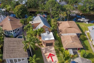 A tropical waterfront oasis like no other!!! This is a beautiful secluded home with a private boat dock in Rustic Hills. Rustic Hills was originally a popular fishing camp, now a quaint enclave of 178 canal front homes. Neighborhood entrance is through a covered bridge. Spacious 3 bedrooms with a loft, 2 baths, 2 story home with detached garage. Great view of the canal with approximately 80 feet of waterfront with a brand new seawall. Covered patio area with in-ground hot tub/ cocktail pool that is perfect for entertaining with a fire pit. Exquisite lush landscaping is truly breathtaking. Custom wood cabinetry and granite counters in the kitchen. Wood burning fireplace in the living room. A-rated Palm City schools, Martin County School District. Easy access to I-95 & FL turnpike.