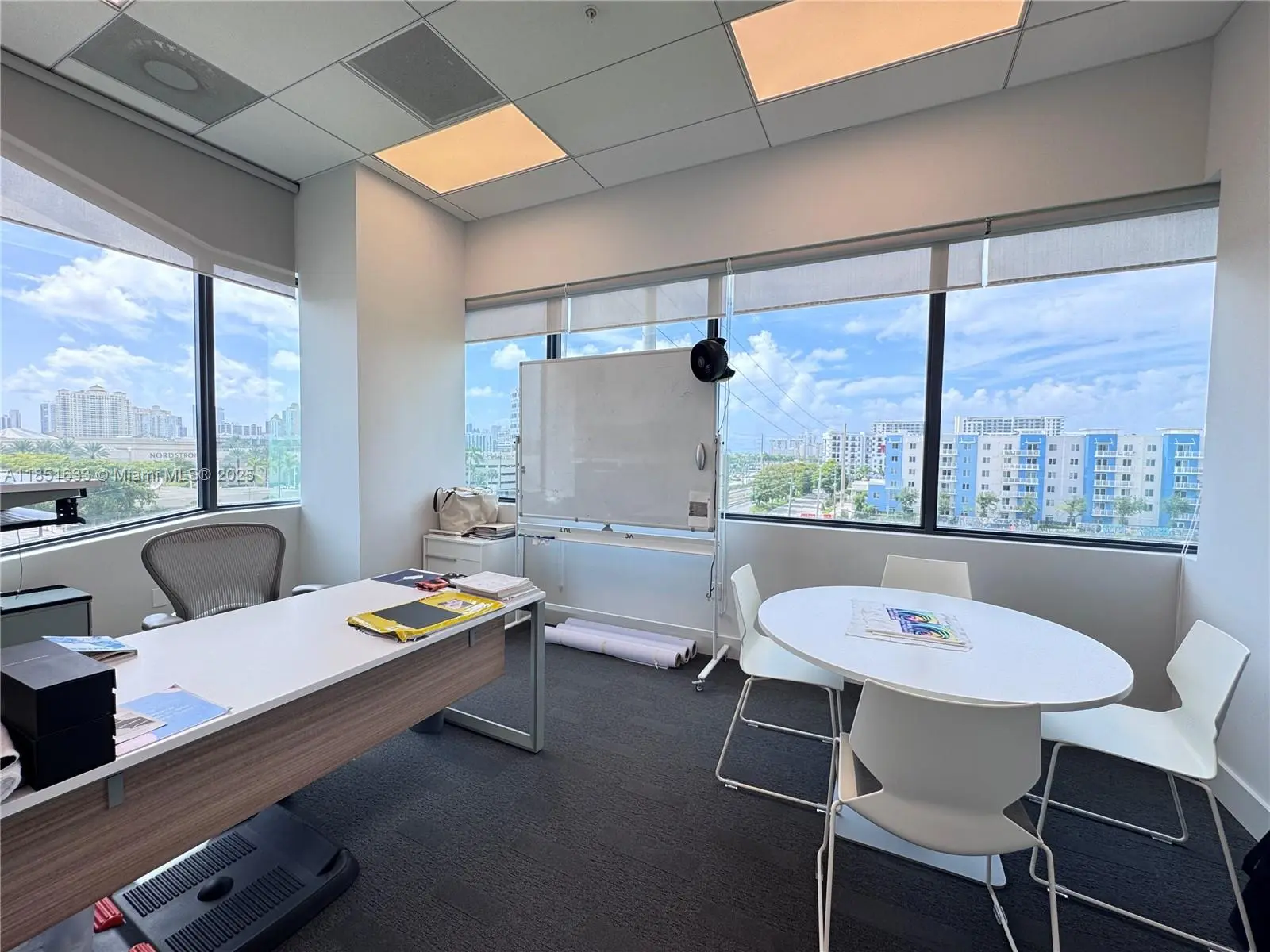 Own this exceptional 1,294 RSF corner office perfectly positioned directly across from Aventura Mall and adjacent to the new Brightline Station. This office features three private offices along the window line, a welcoming reception area, and a spacious open workspace with stunning views overlooking Aventura Mall. Forum Aventura offers premier amenities including a contemporary lobby with sleek finishes and a Sky Lounge rooftop terrace featuring a fully equipped conference room, lounge area, and outdoor meeting space. This is a rare opportunity to own an office in one of Aventura’s most sought-after Class A office buildings, combining modern design, unmatched amenities, and a truly unbeatable location.
