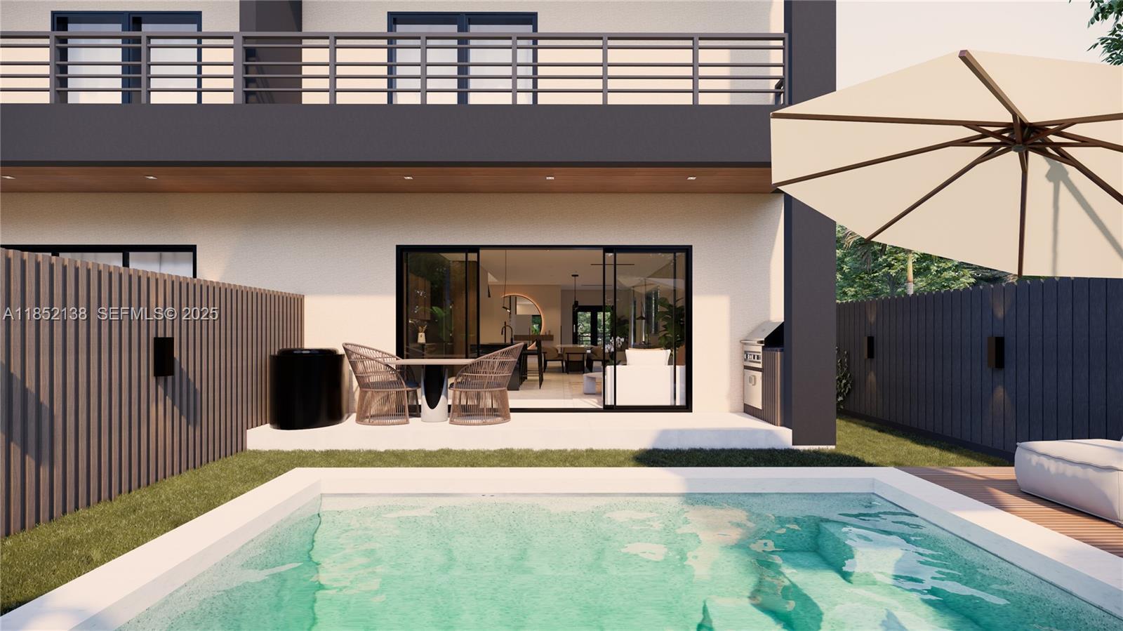 Brand new construction expected to be ready by the end of 2025. This 4-bedroom, 3.5-bath luxury townhouse is already making a statement. Thoughtfully designed by a Miami-based designer, every detail from the open layout to the high-end finishes has been curated for quality and modern family living. Embrace the indoor-outdoor lifestyle with a spacious open-concept design that flows seamlessly to your private backyard. This outdoor oasis features a pool and an integrated BBQ area, perfect for relaxing and entertaining. This is more than a townhouse; it's a carefully crafted home designed to elevate your everyday life. Minutes away from Coconut Grove, Brickell, Downtown, and the beaches. There's still time to personalize some of the stunning finishes and make this home truly your own.