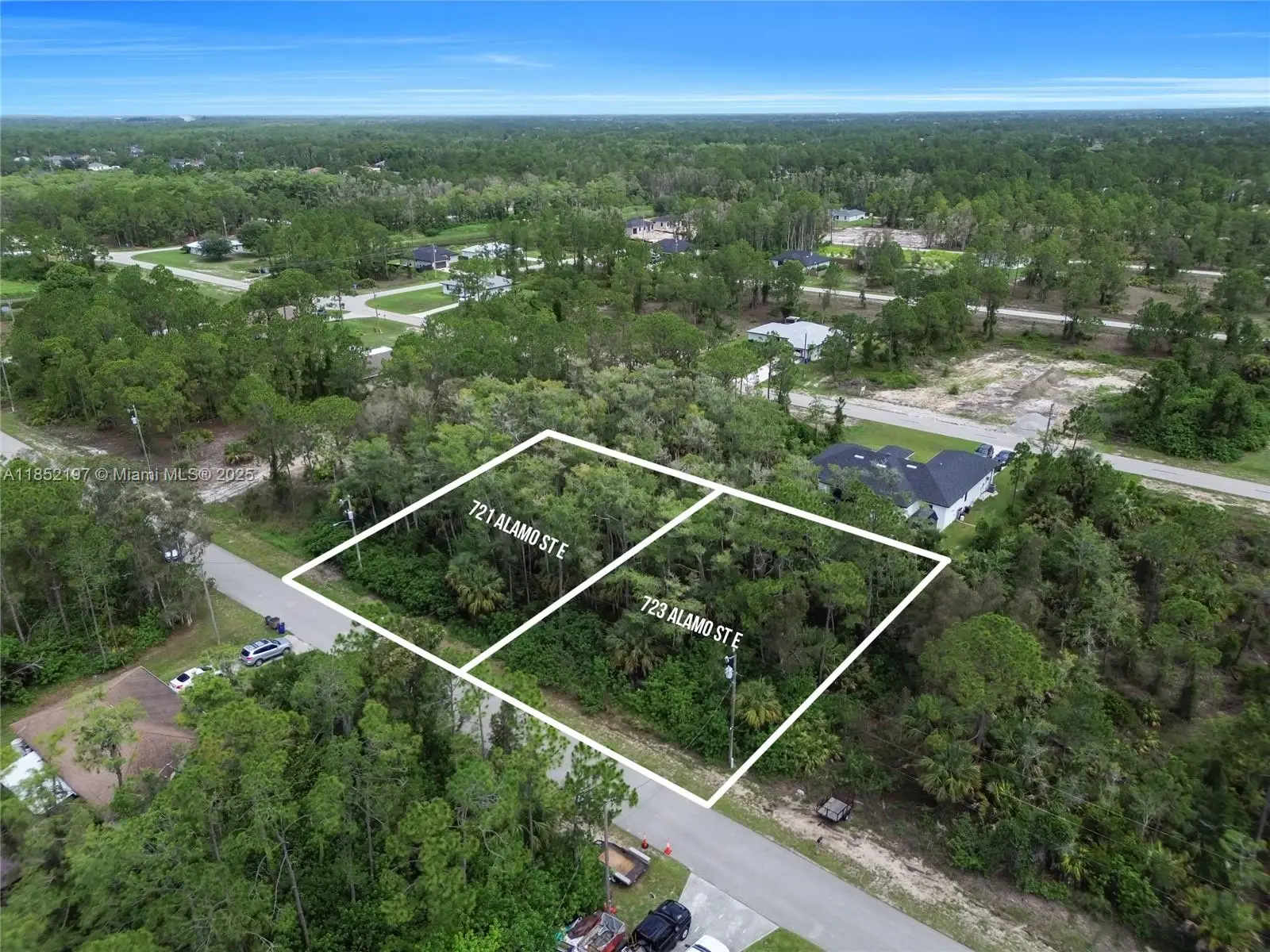 Great Location and a Unique Opportunity! This quarter-acre lot is in the growing community of Lehigh Acres. It's a prime investment opportunity as it is being sold together with the adjacent property at 721 Alamo St E. This gives you a rare chance to own a half-acre of land! The area is expanding rapidly and is popular with families. Enjoy easy access to nearby parks, shops, and a variety of food trucks. Build your dream home on this unique piece of land!