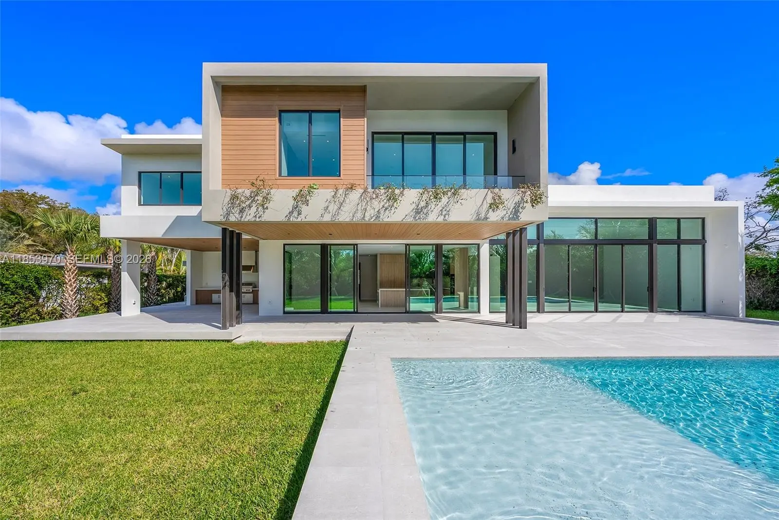 Introducing a distinguished new construction on a premier corner lot in the heart of Pinecrest, where timeless elegance meets modern design. This two-story residence features soaring ceilings, a grand entry, impact windows, custom Coblan cabinetry, and a chef’s kitchen with Miele appliances. The expansive great room opens to a sleek modern pool and covered terrace, perfect for entertaining. Two bedrooms on the main level, one with a private entrance, provide ideal accommodations for guests or multigenerational living. Upstairs, three en-suite bedrooms accompany a luxurious primary suite with a spa bath, oversized closet, and private terrace. A two-car garage and future-ready smart home integration complete this exceptional offering.