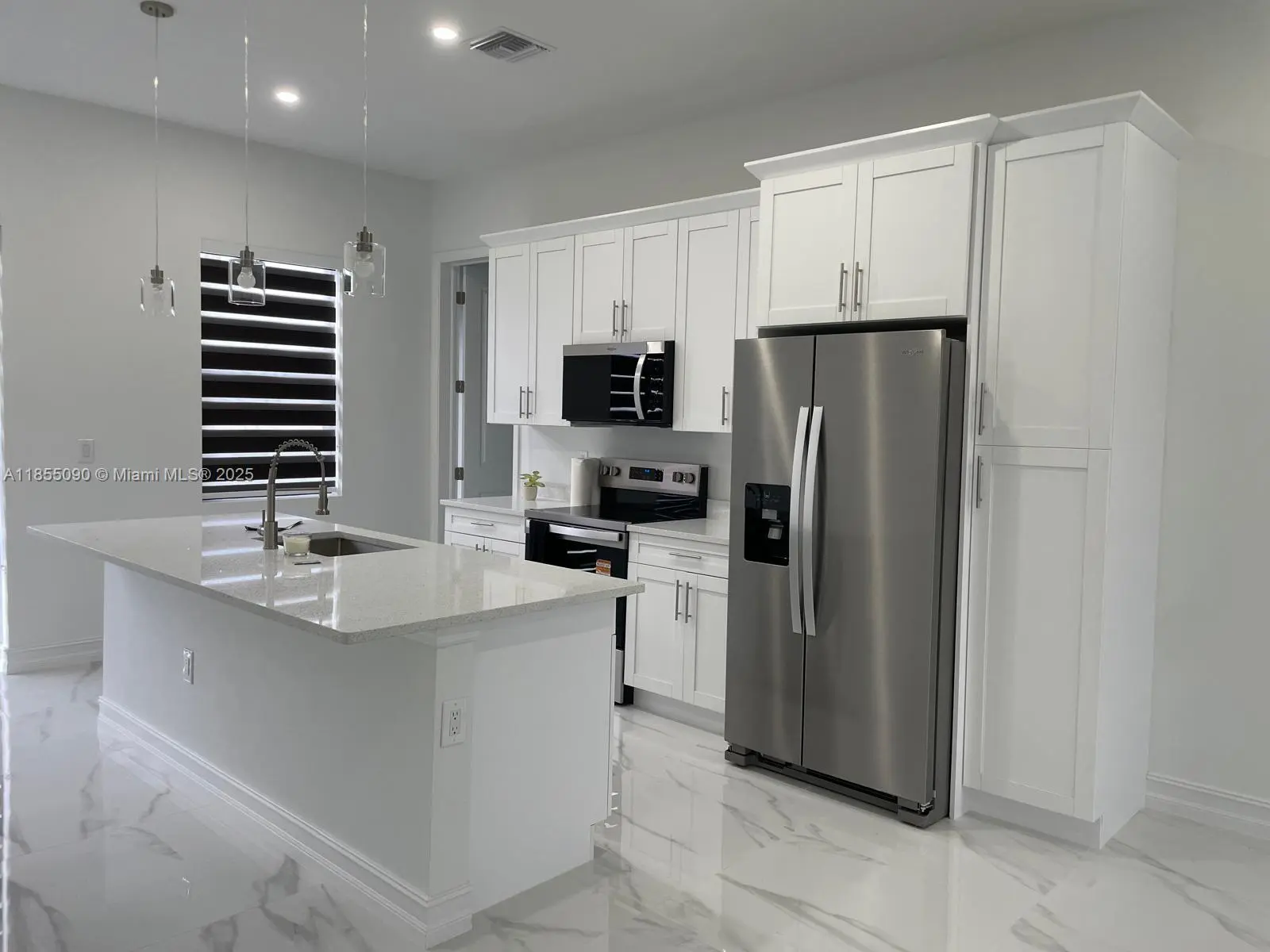 Step into a harmonious New Home featuring three generously proportioned bedrooms complemented by three well-appointed bathrooms, offering the perfect balance of privacy and comfort. The heart of this home showcases a sophisticated open-concept kitchen that seamlessly blends functionality with style, it has a big fenced in back yard for big family events. Culinary enthusiasts will appreciate the designer touches, including premium quartz countertops, a spacious island perfect for casual dining and entertaining, and a complete suite of new stainless steel appliances. The carefully curated appliance package includes a refrigerator, dishwasher, built-in microwave, and range, all selected to enhance your cooking experience.