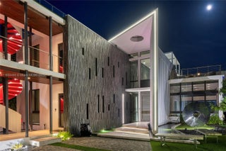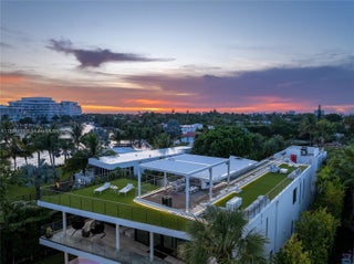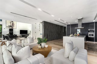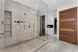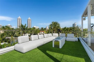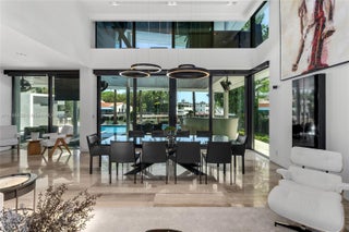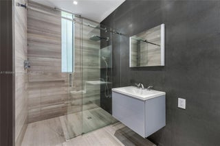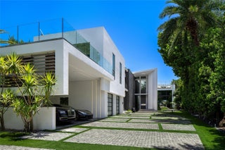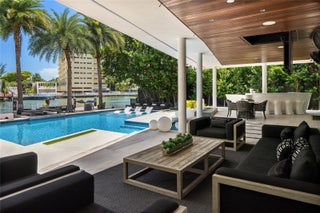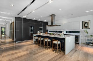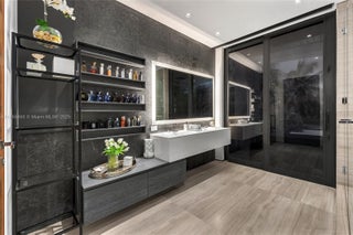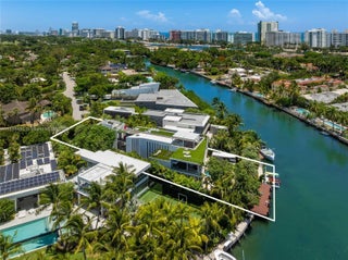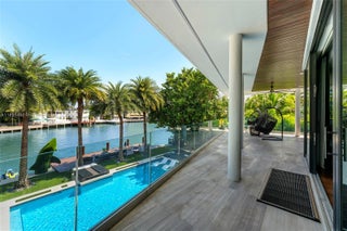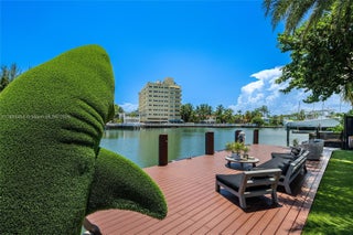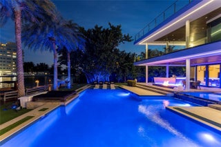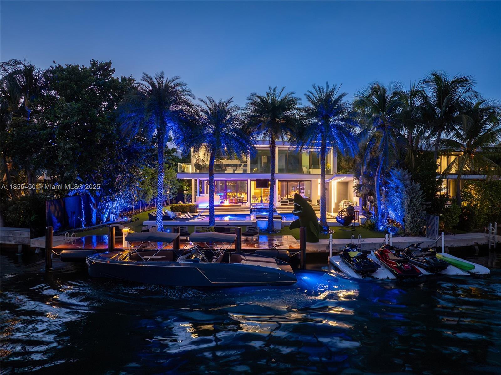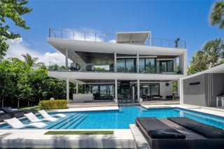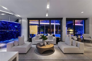 This striking modern tri-level waterfront residence blends bold architecture with refined luxury. Set on a 17,676 SF gated lot w/approx. 90FT of WF, the home offers 9,424 total SF with 5BR/7.5BA, expansive family, dining, & living areas all with water views. Highlights include marble & rich hardwood floors, custom millwork, chef’s kitchen with Wolf and Miele appliances, built-in aquarium, & seamless indoor-outdoor flow. Principal suite features an expansive terrace, spa-style bath, and massive walk-in closet. Additional amenities include a rooftop lounge with firepit & TV, a gym-converted garage, state-of-the-art theater, resort-style pool w/waterfall, summer kitchen, custom bar, 45FT dock, 3 jet ski slips & direct Intracoastal access. This residence epitomizes the Miami lifestyle.