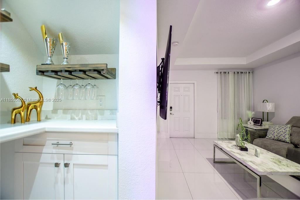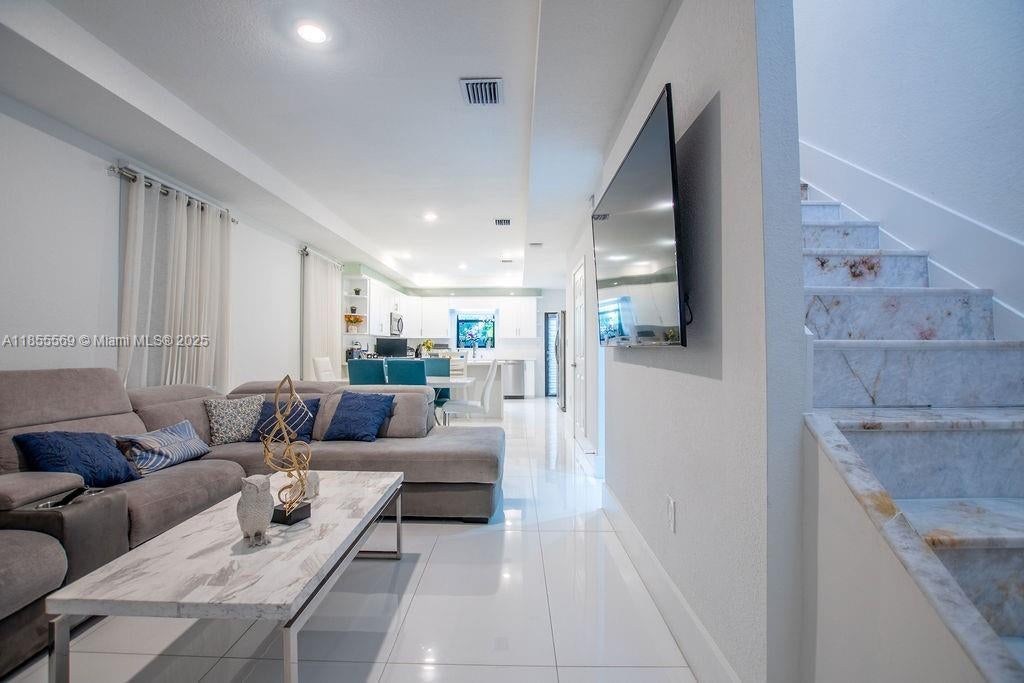 Contemporary remodeled townhouse with luxury finishes throughout. Features include stainless steel appliances, tile floors, stunning marble accents on stairs & bathrooms, and smart home features. The primary bedroom boasts a walk-in closet and hallway closets. Large Primary bedroom, primary bath includes dual sinks, private toilet room, and extra-large shower with rainfall showerhead. Laundry room upstairs with washer/dryer. Private backyard, 1-car garage, gated community with pool & clubhouse. Within 5 miles from Fort Lauderdale Airport, gorgeous beaches, Las Olas strip, world-class shopping, dining, and Downtown Ft. Lauderdale. Located off Marina Mile Blvd, close to main highways and transportation. Furniture may be included for a negotiable cost. See 3D Matterport Virtual Tour Attached