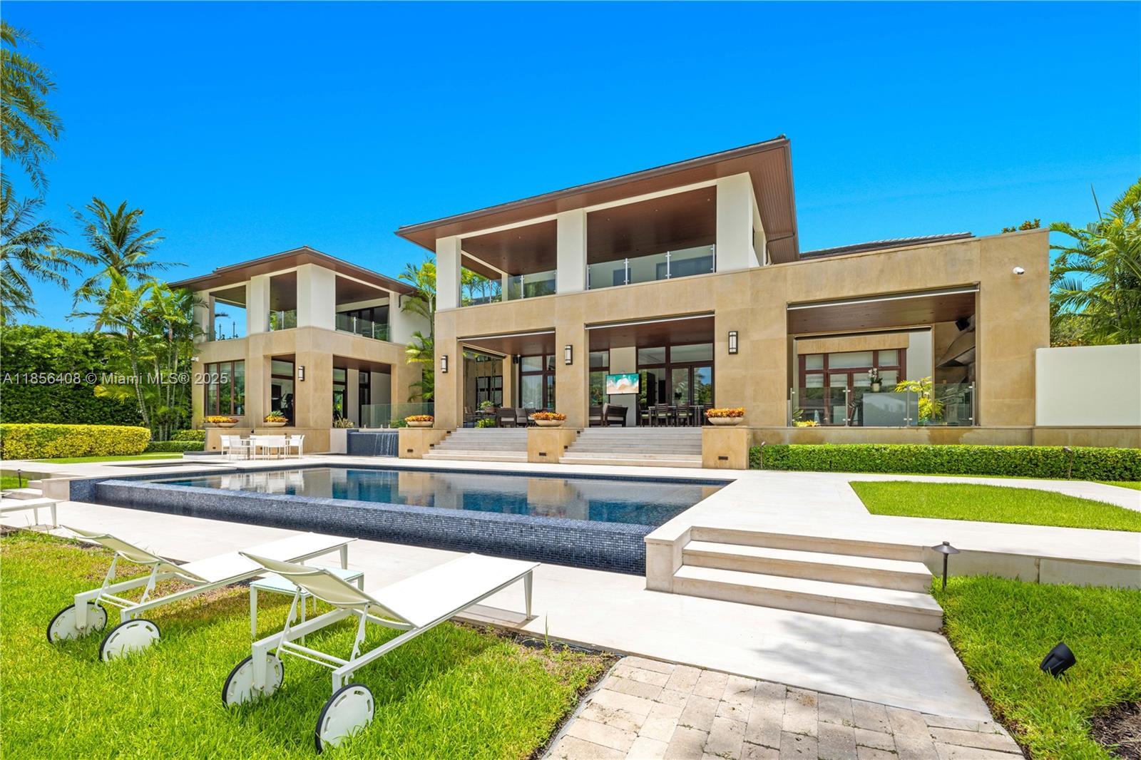 Presenting a breathtaking waterfront mansion that defines sophistication. Set on a 40,511sq ft lot with 180ft of prime water frontage and private dock, this residence offers the ultimate Miami lifestyle where elegance meets serenity. Spanning over 12,173sf, this architectural masterpiece boasts 7 bed, 7 baths, 2 powder rooms. Thoughtfully designed with multiple social and entertainment areas, including a library, and exquisite lounges ideal for hosting. Every detail reflects the owner's discerning taste from the rich custom wood finishes to the sleek marble floors throughout. Kitchen equipped with top-of-the-line Miele appliances, Temperature controlled wine cellar. The estate offers a gym and private staff 2 bedrooms quarters for seamless living, full generator, elevator, 4 car garage.