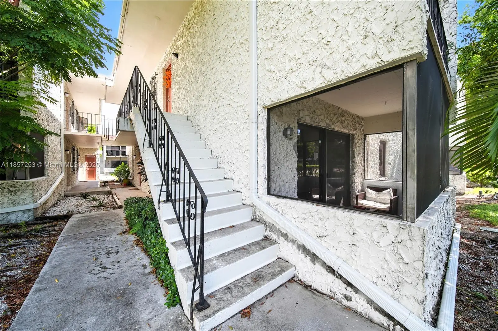 Be ready to feel right at Home with this cozy updated corn unit condo in Palmetto Bay, featuring wood-look porcelain tiles, impact windows & Sliding Glass door, wood shaker style kitchen cabinets with granite countertops & stainless steel appliances. The large bedroom offers a spacious closet and ample space. The bathroom tiles throughout the walls, a glass enclosed shower and linen closet. Relax on the screened-in covered patio with peaceful garden views. Prime location just minutes from The Falls, shopping centers, dining, and more. Perfect for comfort, style, and convenience!