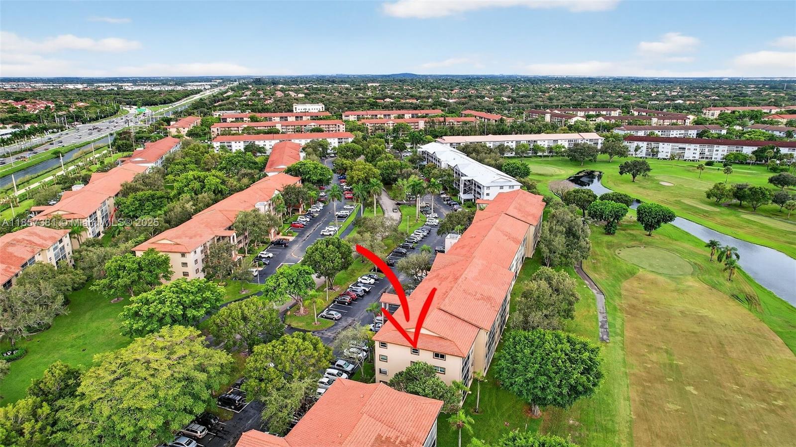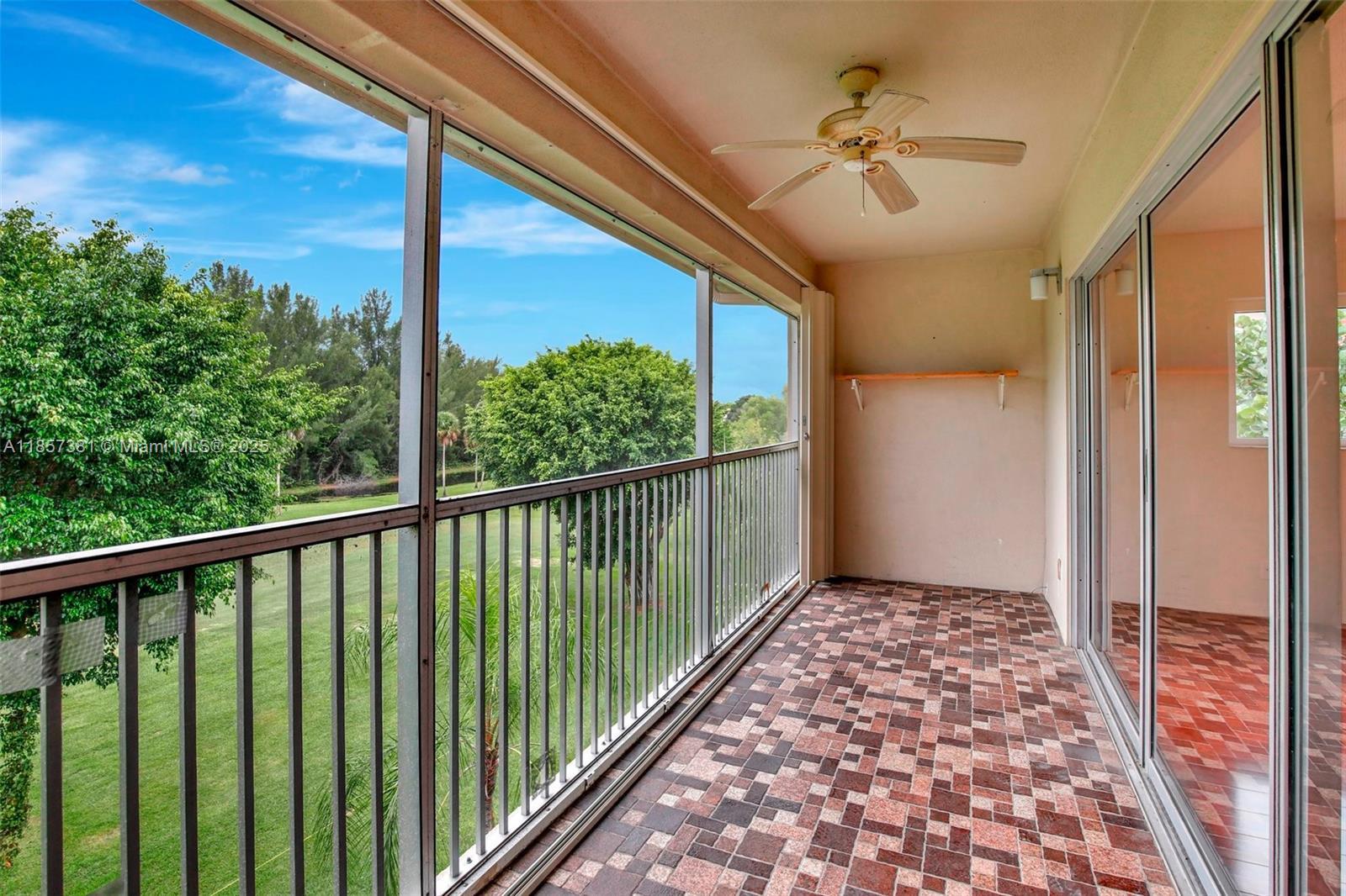 55 and older community with includes cable,internet,water,and trash. Top-floor corner unit and a breathtaking golf view with 1,507 SQ.FT. a well-maintained interior, complete with attic access through the master bedroom closet and a convenient shower bathroom. The kitchen features pull-out drawers for easy access, stainless steel appliances including a French door refrigerator and wood flooring with a high-quality finish. With hurricane impact windows and accordion shutters on the patio, peace and security are ensured, allowing for uninterrupted enjoyment of the breathtaking golf course views. Enjoy Resort-style living with a clubhouse, movies, fitness center, transportation, free golf, pharmacy, cafe, 24-hour security patrol.