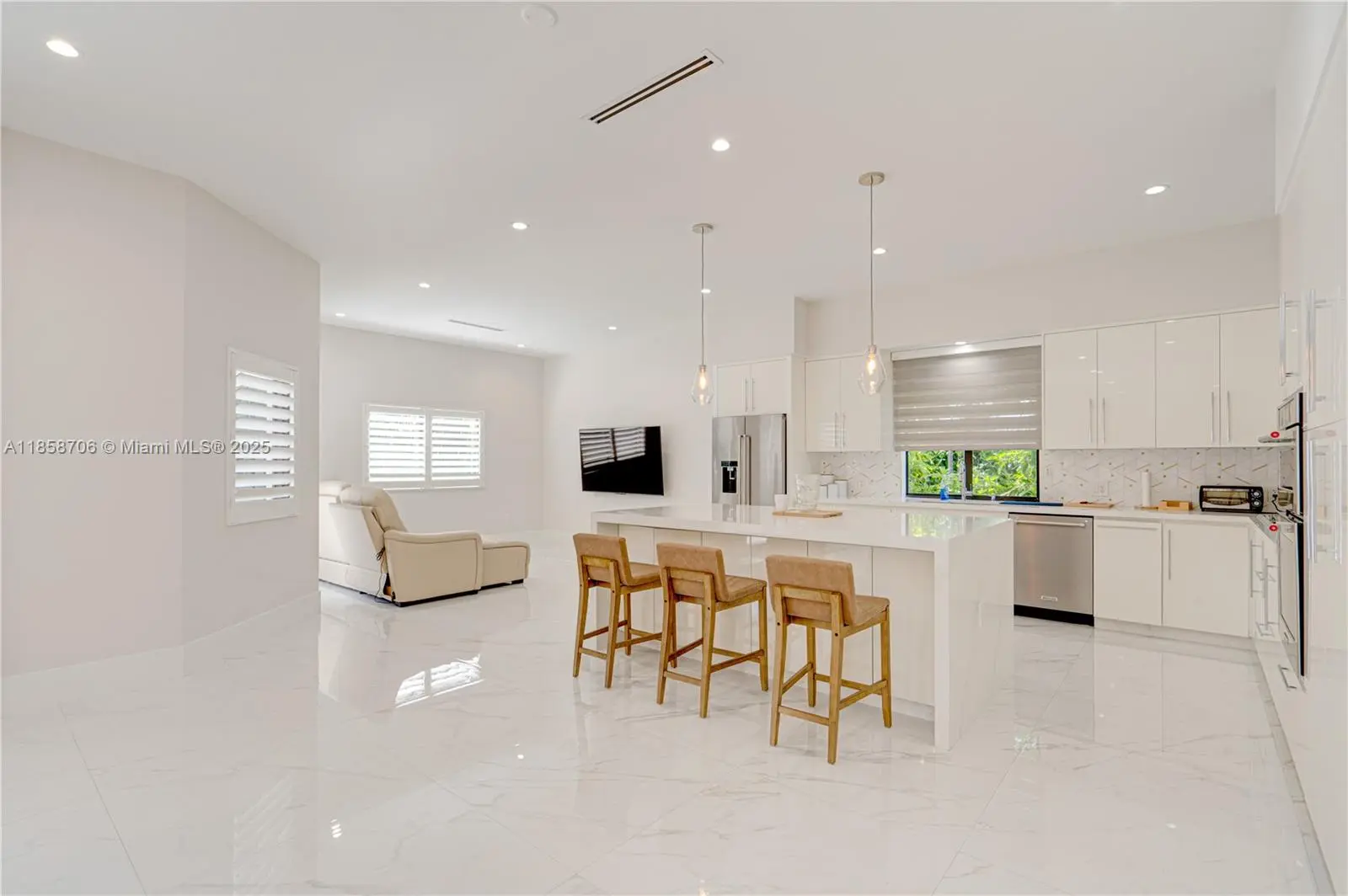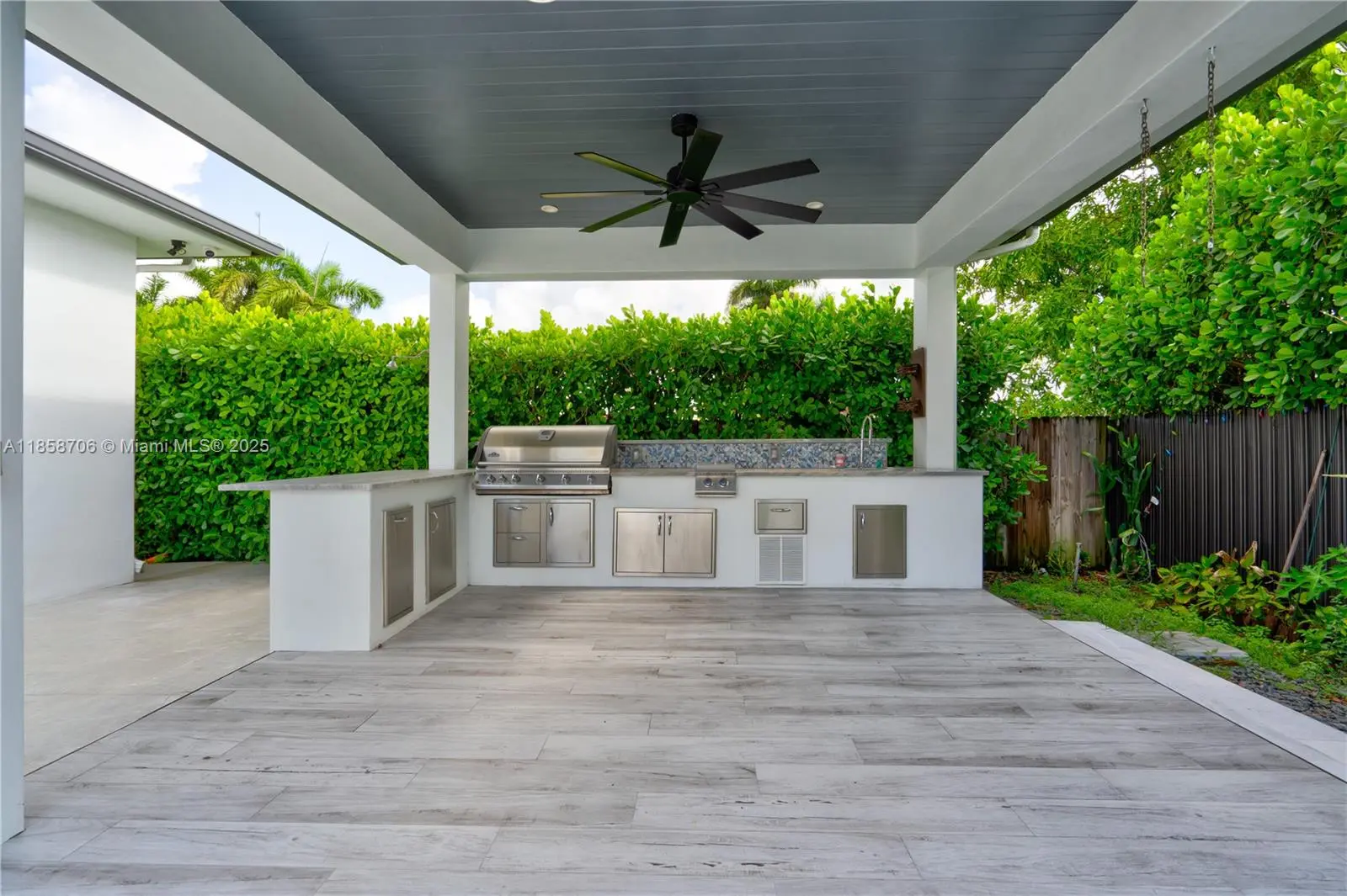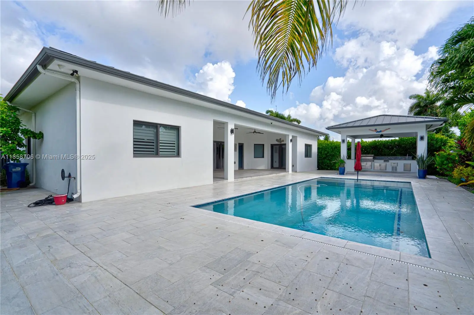 Spectacular 3 Bedroom - 3 Bath on a Private Cul-de-Sac! Stunning, custom-designed residence offering 3,179 sq. ft. of highly refined living space, plus an additional 225 sq. ft. cabana. Step inside to experience an open area and high ceiling - floor plan featuring top-of-the-line finishes throughout. From the high-impact windows and plantation shutters to the metal roof and LED lighting, every detail has been carefully crafted for comfort, style, and durability. The outdoor space is an entertainer’s dream—relax or host guests in the Huge resort-style pool and enjoy year-round outdoor dining under the 15' x 15' cabana, complete with a built-in kitchen and grill.