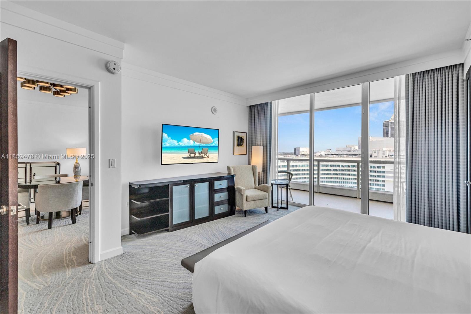 Discover luxury living in this rarely available combined dual-folio residence at the iconic Fontainebleau (Sorrento Tower) in Miami Beach. The residence offers two spacious master suites, two full baths and a half bath across 1,502 SF of refined living space; this residence comes fully furnished and move-in ready with uninterrupted ocean, intracoastal, resort pool views from expansive wraparound balconies. Enjoy 5-star amenities: award-winning spa, fitness center, world-class dining, multiple pools, beach services, concierge and more-all at your doorstep. Eligible for hotel rental program- ideal for luxury living+ income potential at Miami Beach's most iconic resort.