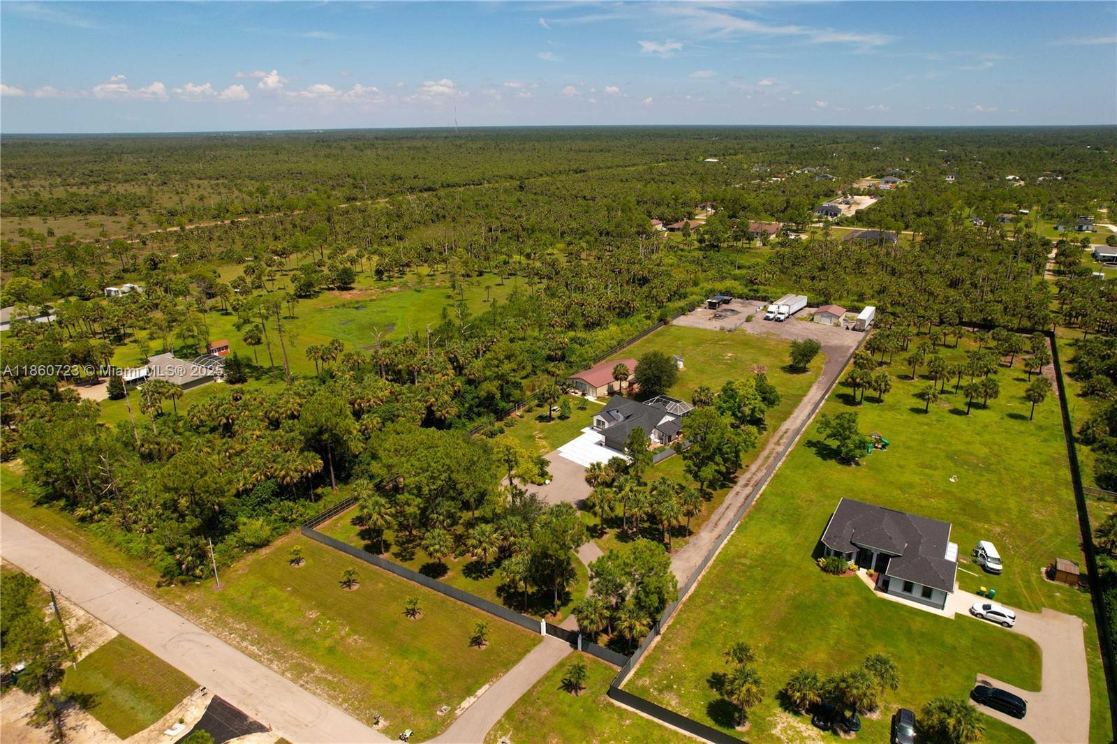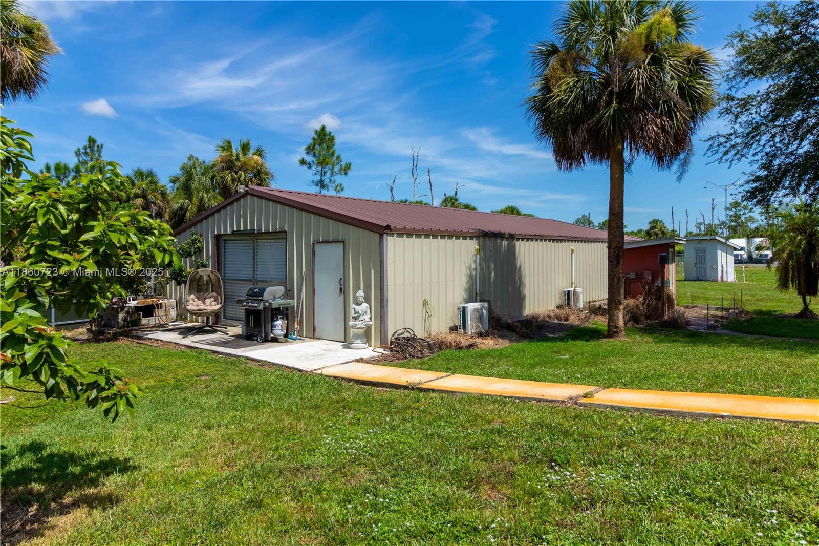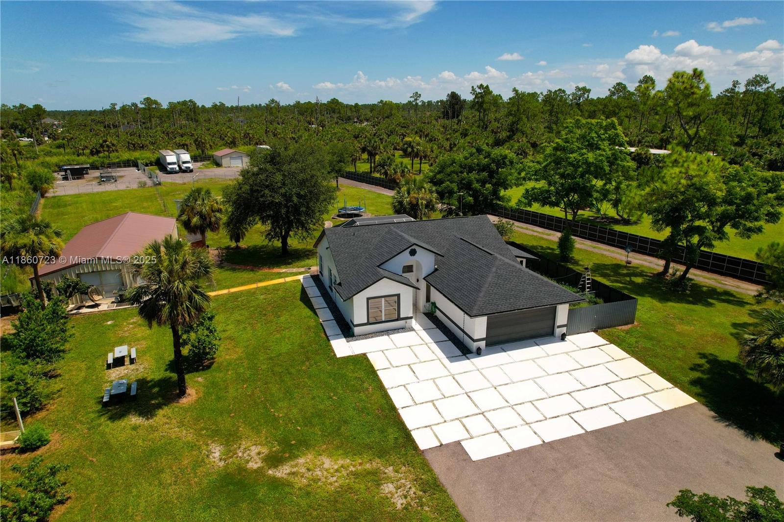 ***SELLER IS OFFERING $15,000 CREDIT*** Completely REMODELED home on 2.73 CLEARED ACRES in GOLDEN GATE ESTATES, fully FENCED AND GATED with a COMMERCIAL-GRADE STEEL FENCE and LARGE ASPHALT DRIVEWAY. Features include NEW ROOF, WHOLE-HOME REVERSE OSMOSIS, BRIGHT OPEN LIVING SPACES, and a MODERN KITCHEN with sleek finishes and stainless steel appliances. The SPLIT FLOOR PLAN offers privacy with a spacious primary suite and a GARAGE CONVERSION that functions as a THIRD BEDROOM or FLEX space. Enjoy a SCREENED POOL, landscaped grounds, and FRUIT TREES. A 30x60 COMMERCIAL-GRADE STEEL BUILDING is INSULATED, COOLED with THREE MINI-SPLIT AC UNITS, and has its OWN SEPTIC—ideal for a workshop or business use—plus an additional 24x30 STEEL BUILDING for extra space.