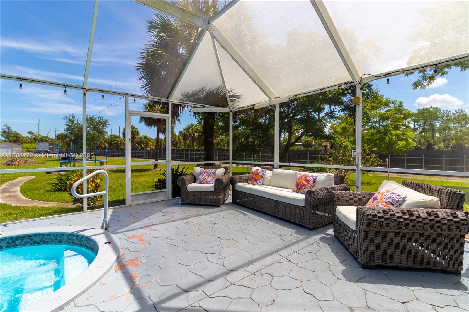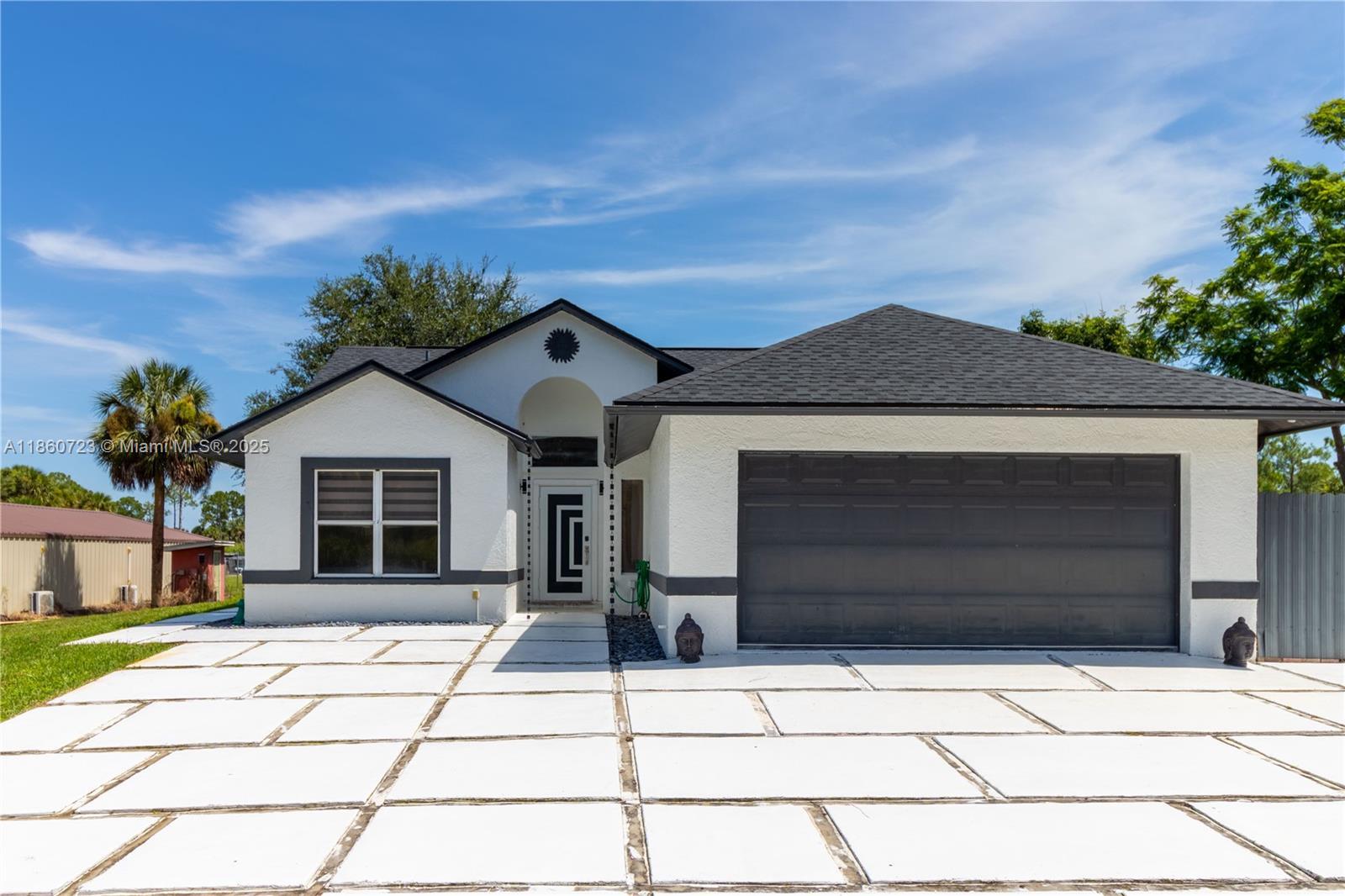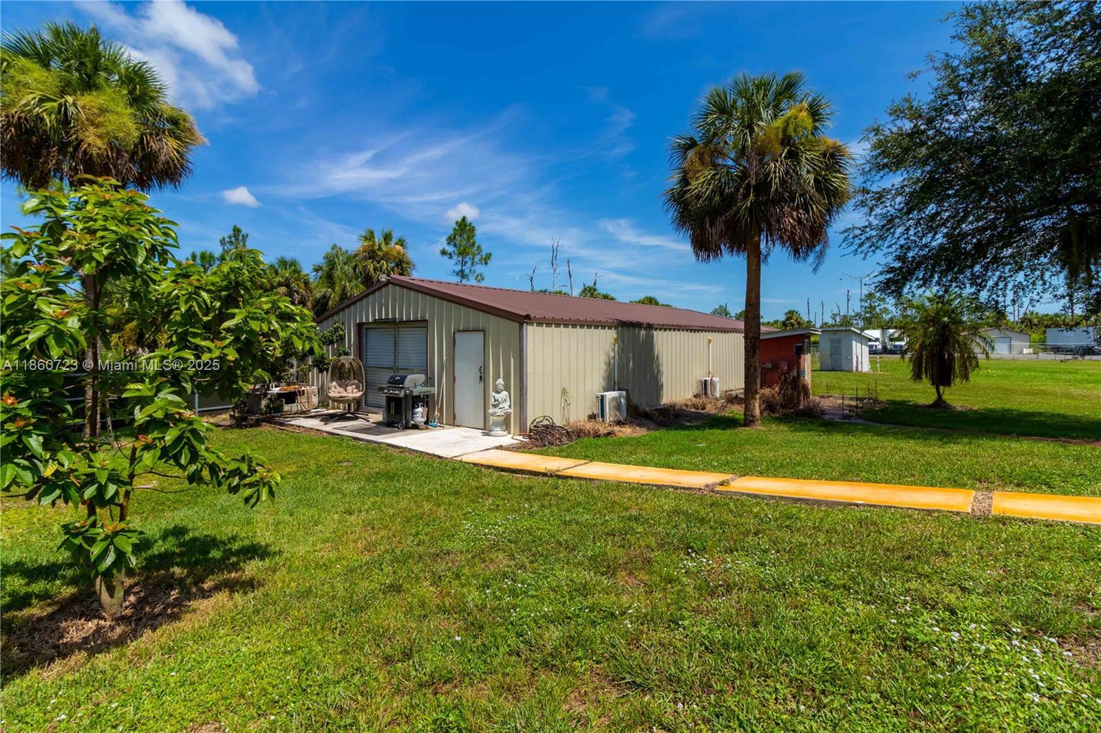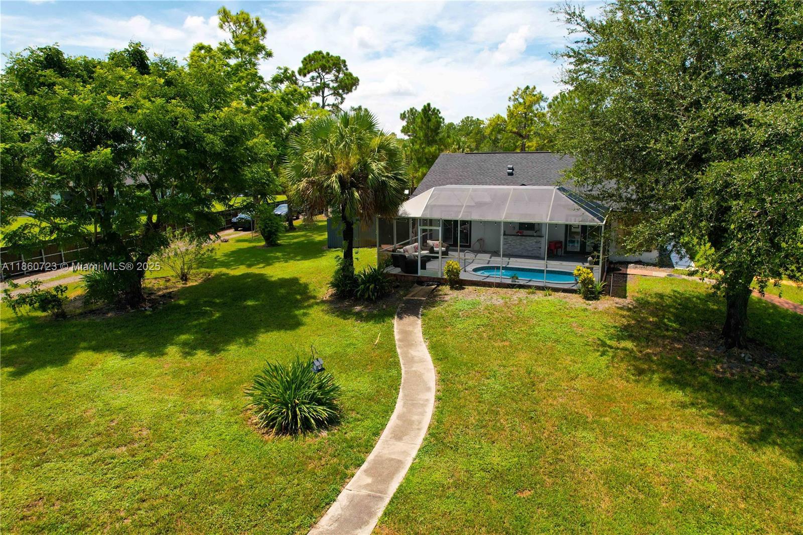***SELLER IS OFFERING $15,000 CREDIT*** Completely REMODELED home on 2.73 CLEARED ACRES in GOLDEN GATE ESTATES, fully FENCED AND GATED with a COMMERCIAL-GRADE STEEL FENCE and LARGE ASPHALT DRIVEWAY. Features include NEW ROOF, WHOLE-HOME REVERSE OSMOSIS, BRIGHT OPEN LIVING SPACES, and a MODERN KITCHEN with sleek finishes and stainless steel appliances. The SPLIT FLOOR PLAN offers privacy with a spacious primary suite and a GARAGE CONVERSION that functions as a THIRD BEDROOM or FLEX space. Enjoy a SCREENED POOL, landscaped grounds, and FRUIT TREES. A 30x60 COMMERCIAL-GRADE STEEL BUILDING is INSULATED, COOLED with THREE MINI-SPLIT AC UNITS, and has its OWN SEPTIC—ideal for a workshop or business use—plus an additional 24x30 STEEL BUILDING for extra space.