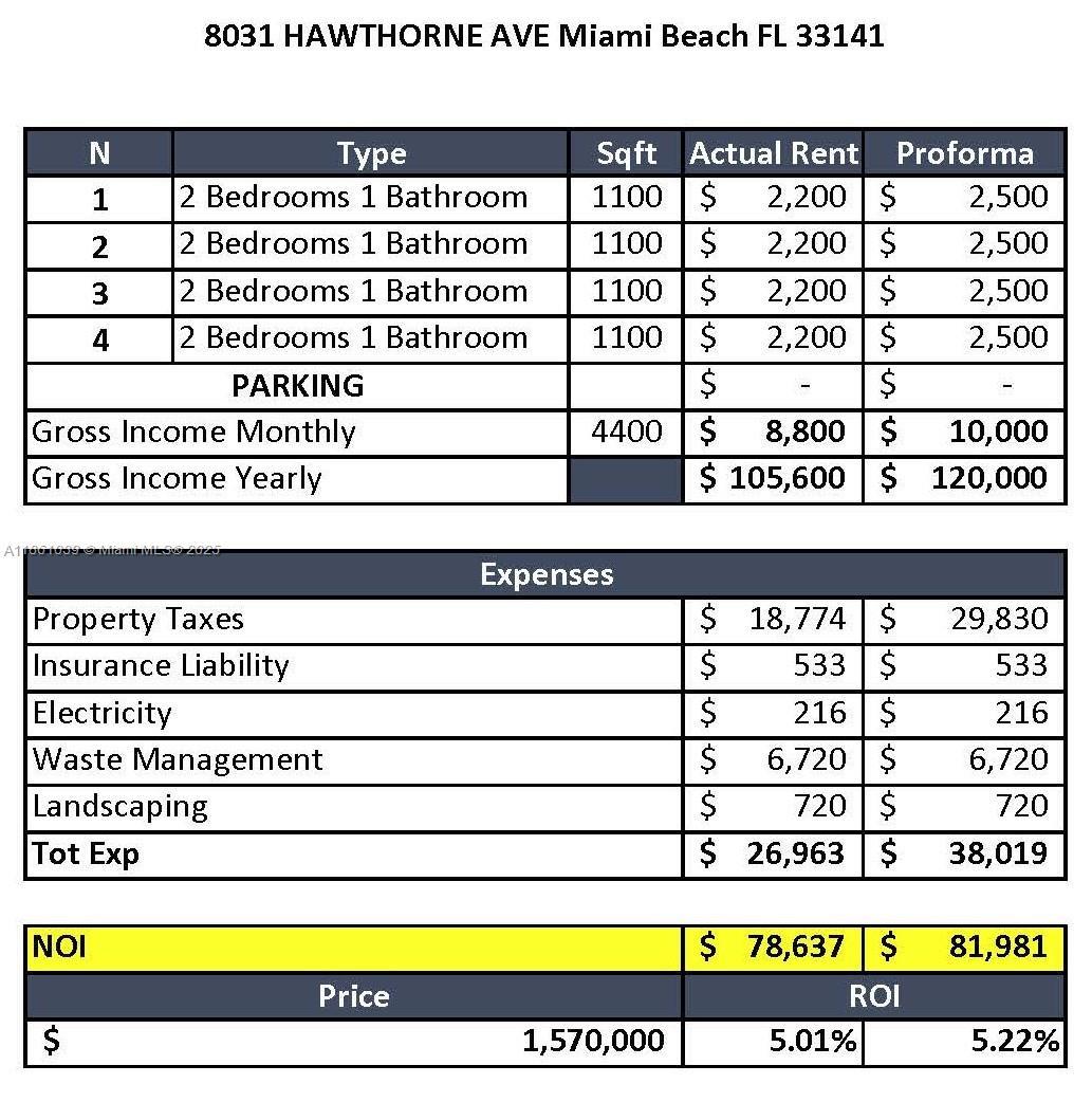 Biscayne Point fourplex corner lot of 6,215 SQFT. The property consists of 4 units of two bedrooms and one bathroom each. This property already passed the 40 year in 2019.