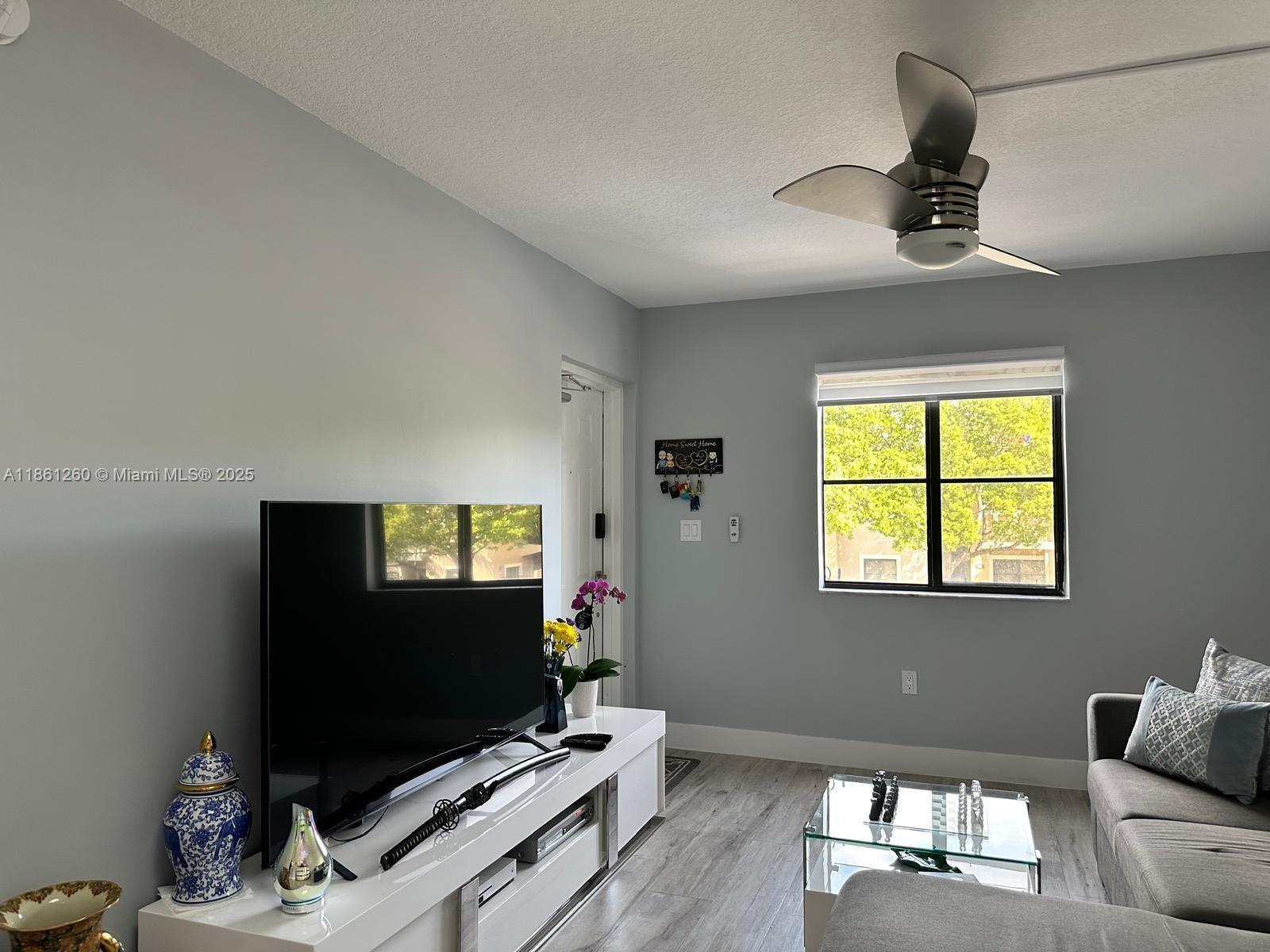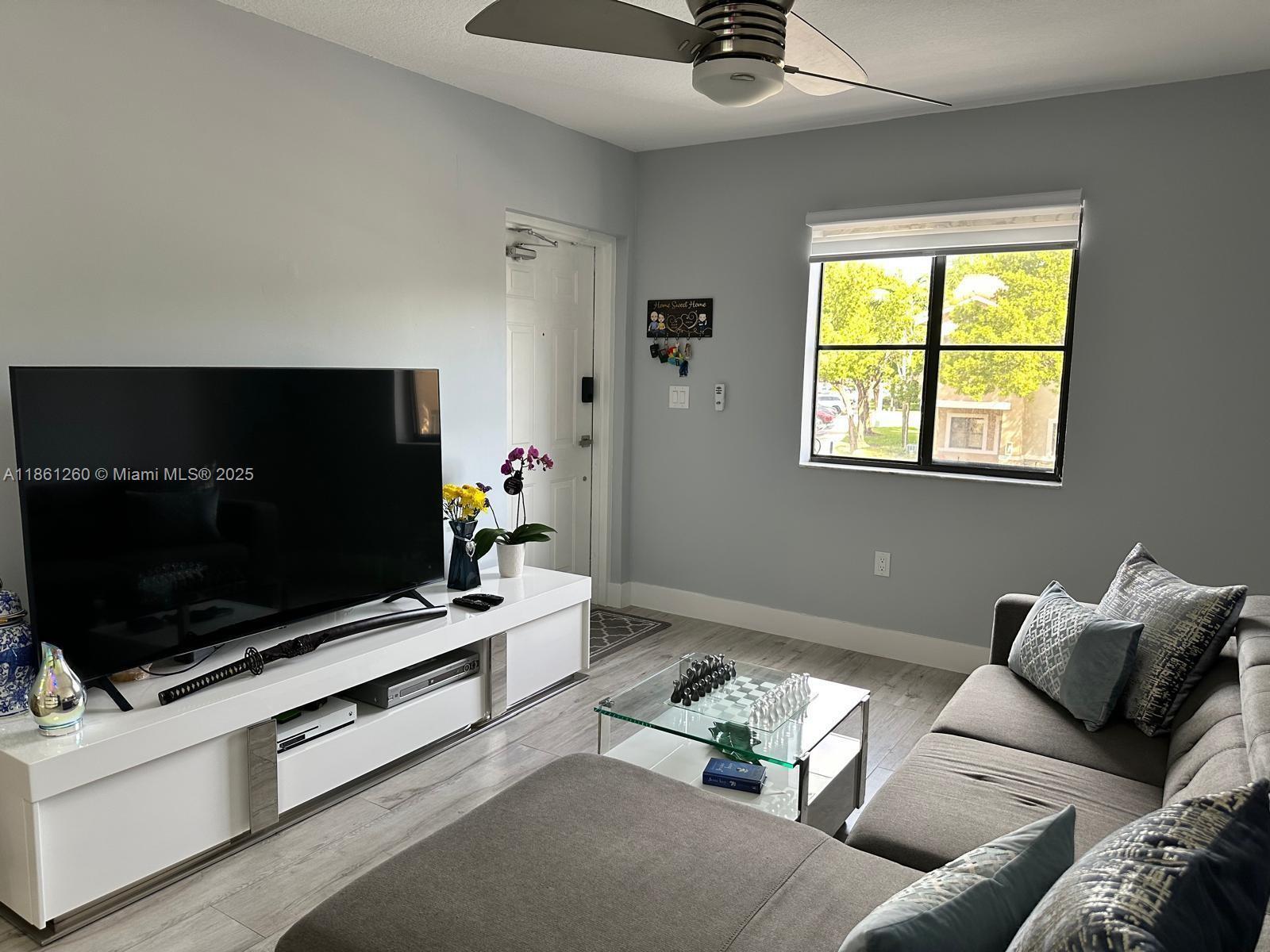Fully renovated 2-bedroom, 2-bath condo with high-quality ceramic floors throughout. Bright and spacious living room with ceiling fan, plus large bedrooms; master includes walk-in closet and ceiling fan. Modern bathrooms with premium finishes. Renovated kitchen with top-quality ceramic, white cabinets, and almost new appliances. New A/C and fire alarm. Community offers renovated clubhouse with pool, gym, green areas, and playground. Quiet and beautiful neighborhood with excellent schools nearby. A true move in ready home with modern comfort and style. A fantastic place to live.