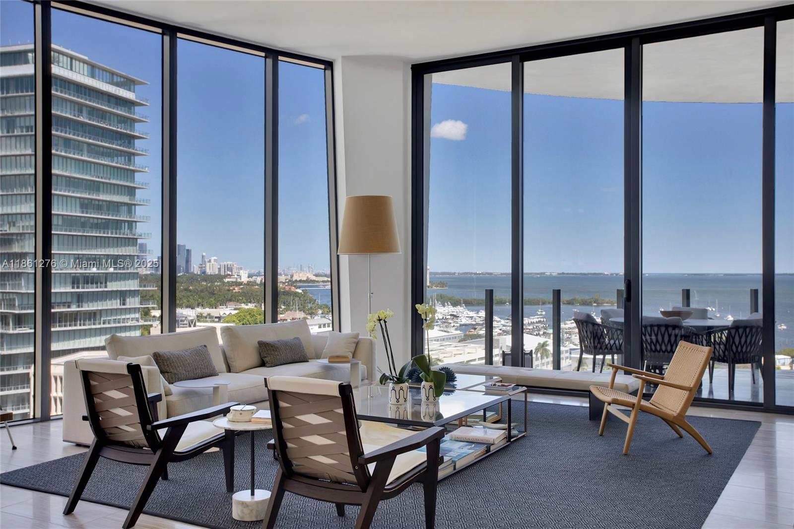 Magnificent architecture and spectacular views pared with effortless living make One Park Grove the jewel of Coconut Grove. Pritzker Prize winning architect Rem Koolhaas/OMA has designed a waterfront masterpiece on a five-acre site with 80,000SF of beautiful green space, and 50,000SF+ of unique amenities. Residence 14D is a unique custom home with endless waterfront views, 12ft ceilings, and a William Sofield designed chef's kitchen featuring Wolf, Miele, & Subzero appliances. Security, safety and privacy measures are second to none. Beautifully furnished and upgraded for a turnkey experience.