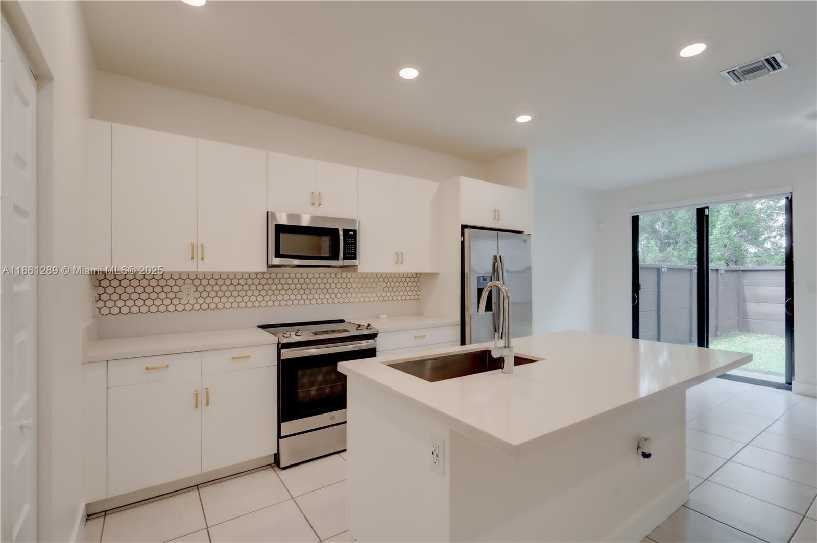 Welcome to Satori, an exclusive luxury gated community in Miami Lakes. This 3-bedroom, 2.5-bath home features a beautifully designed interior with a spacious kitchen, quartz countertops, ample cabinetry, and stainless steel appliances. Enjoy the open living and dining area with a convenient half bath downstairs. The fenced yard provides outdoor privacy, while upstairs you’ll find three bedrooms, including a primary suite with a large walk-in closet. Community amenities include a resort-style pool and spa, splash park, fitness center, and clubhouse. Located near top-rated schools, shopping, and dining—perfect for family living!