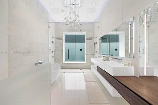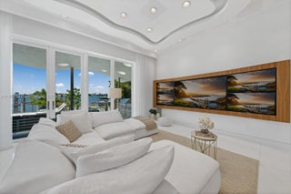 Step Inside With Me! This modern waterfront home on the gated island of Biscayne Point unveils sun-drenched interiors with unobstructed open-bay views. Thoughtfully designed, all social areas and guest spaces are arranged on a single level. Past the foyer, soaring double-height ceilings introduce bright living areas and a sleek specialty bar. The Mia Cucina gourmet kitchen highlights an oversized island with ample storage and boasts Wolf & Sub-Zero appliances. The spacious primary suite enjoys a private setting with a spa-inspired bath and sweeping water views. Outdoors, entertain effortlessly with a Summer Kitchen, infinity pool, hot tub and deep-water dock. Enhanced with advanced security, LED lighting & automation throughout, all just minutes from Bal Harbour, fine dining, & the beach.