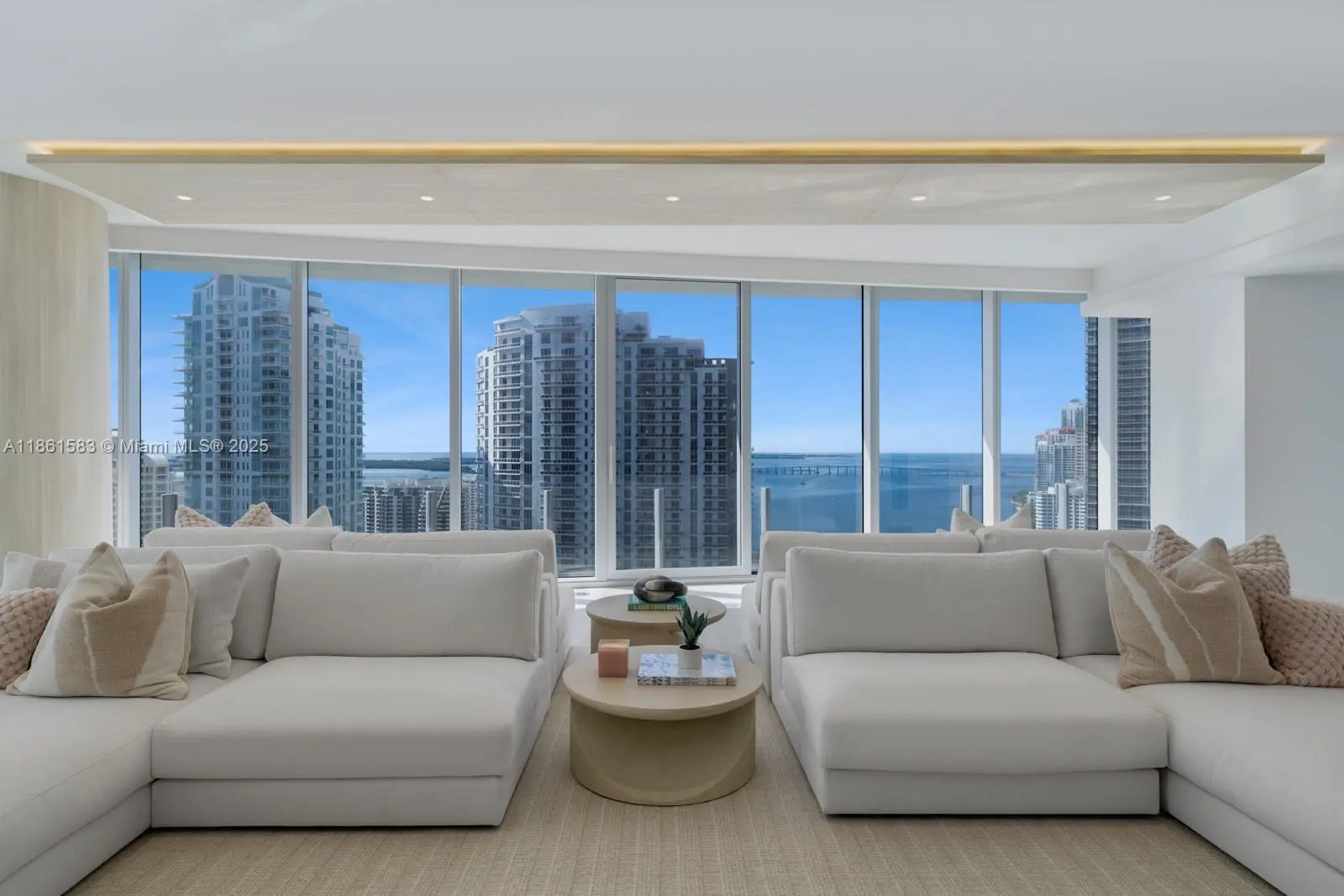 Step Inside With Me! Thoughtfully curated and impeccably upgraded, this stunning corner residence at the iconic Aston Martin Residences offers 5 beds, 5.5 baths & over 3,900sf of refined interiors & panoramic views of Biscayne Bay. Furnished by luxury designer Steven G., the social areas, primary suite, & a guest bedroom are elegantly appointed. This brand new space features custom closets & cabinetry, a 98” TV w/ sound bar in the great room and a concealed 65” TV in the primary suite with Nexus system. Smart home automation with Savant, automatic shades, and a private elevator foyer add to the comfort and convenience of this home. Residents enjoy over 42,000 sq. ft. of unmatched amenities including an infinity pool, spa, fitness center, curated art gallery, marina, helicopter pad & more.