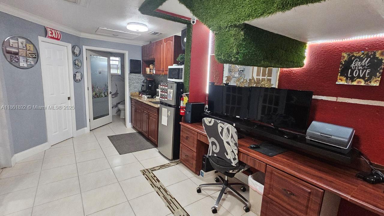 Turn-key 610 sqft office/light warehouse in prime Doral location. Fully furnished & decorated, ready to move in! Includes water & electricity, private full bath, kitchenette, and space for 4–5 desks Front & back doors, storage, and 2 assigned parking spaces+ ample guest parking. Gorgeous lake views. Perfect for small businesses, startups, or professional services seeking a modern, all-inclusive office solution in the heart of Doral. What truly sets this suite apart is the move-in ready condition paired with all-inclusive utilities. Here, everything is prepared and operational from day one. Add in the private bathroom, kitchenette, dual entrances, storage, and lake views, and it becomes clear that this is not just an office — it’s a complete business solution. Possible sublease private off
