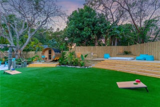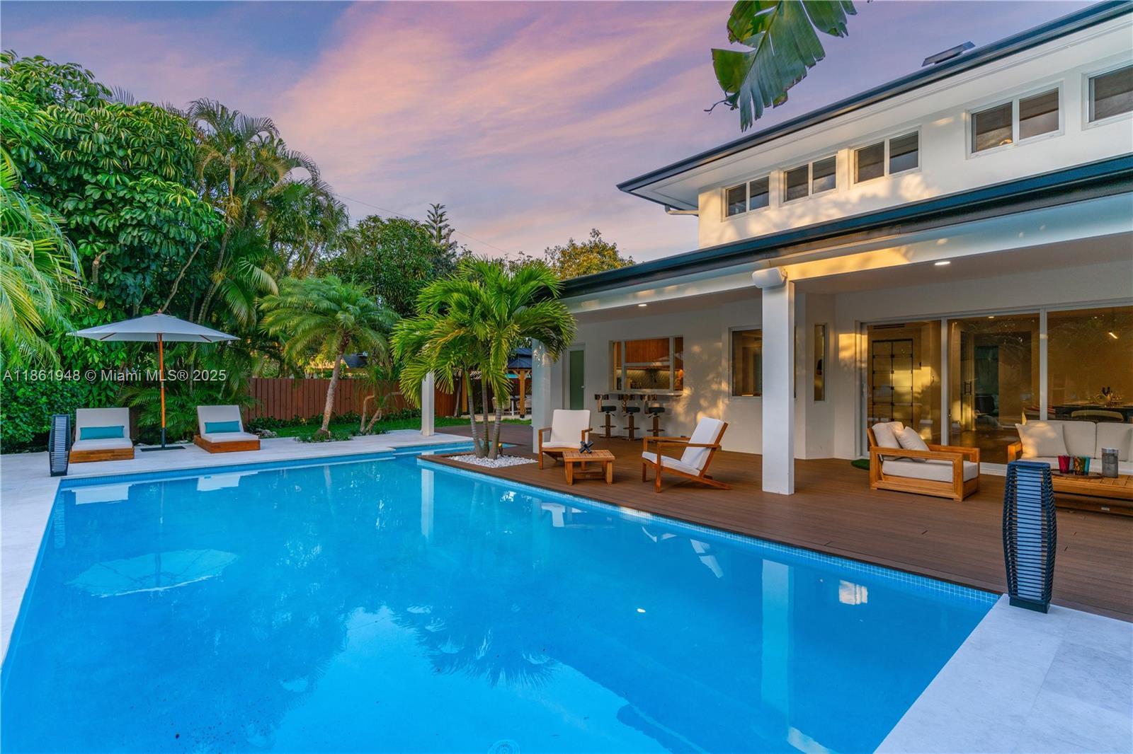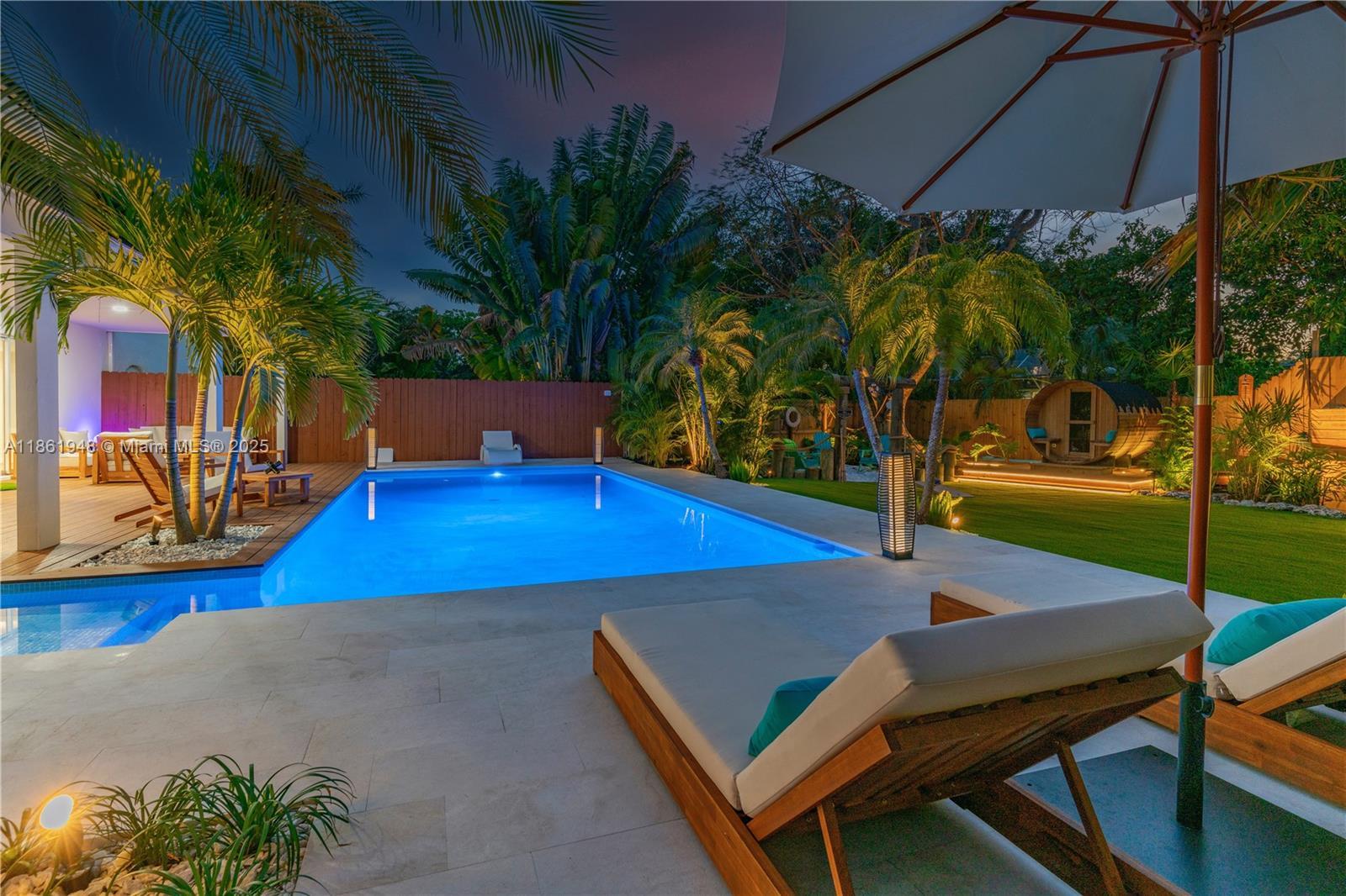 This magnificent estate spans 3,402 SQFT and sits on a lushly landscaped lot of 25,401 SQFT. Featuring 6 beds and 4 baths, with 2 bedrooms and 2 bathrooms conveniently located downstairs. Designed with attention to detail, this home features a gourmet kitchen, a luxurious primary suite, a wine cellar, a saltwater pool, and an outdoor kitchen. Additionally, it's a smart home with cameras, impact-resistant windows, and a driveway that accommodates up to 10 cars. The property also offers a resort-style backyard, Tesla car charging, Sonos sound system, camera security, pool chiller and heater, outdoor barrel sauna, Jacuzzi, and comes fully furnished. Situated in a non-flood zone. Near private schools, shops, restaurants, and marinas. This home is a perfect blend of luxury and functionality.