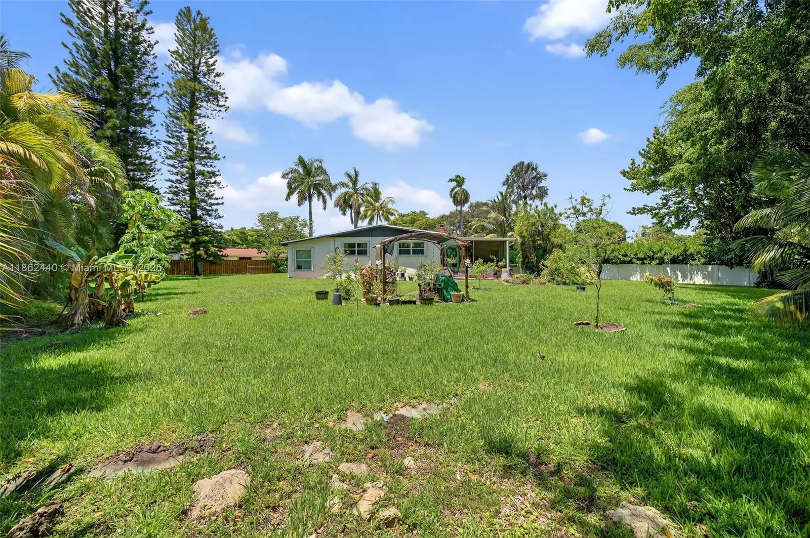 Plantation Gardens! Situated on a quiet cul-de-sac, this 3BR/2BA gem combines charm, comfort, and the essence of Florida living. An oversized fenced lot bursts with tropical fruit trees—avocado, banana, coconut, papaya, pineapple, and citrus—while inside, a bright split-bedroom design flows effortlessly through spacious family, dining, and breakfast areas. The primary suite pampers with dual sinks, soaking tub, and shower. Recent upgrades include new A/C (2023), roof (2017), accordion shutters, generator-ready panel, USB outlets, and motion-sensor lighting. Entertain year-round on the expansive screened patio in a beloved community with tree-lined streets, welcoming neighbors, and top-rated schools.