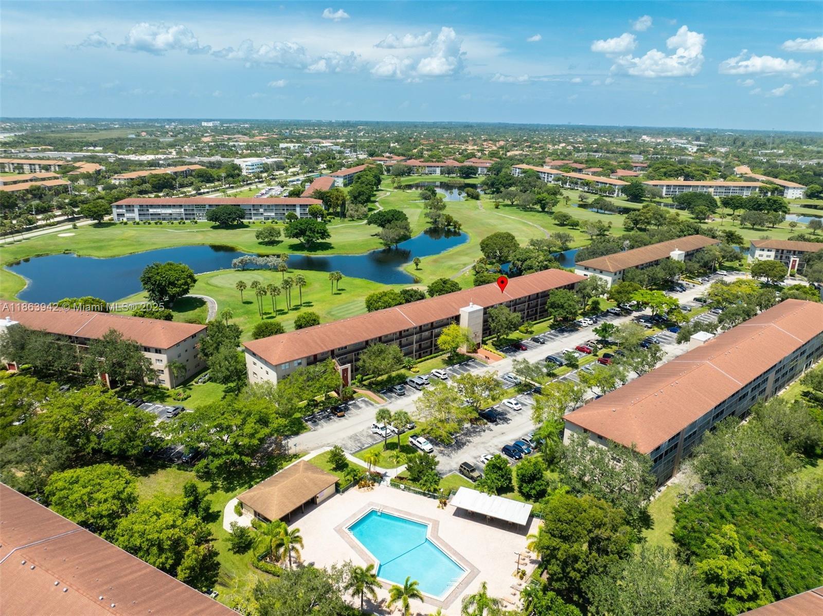 This 2 Bed/ 1.5 Bath condo has beautiful golf course views! Renovated kitchen and bathrooms. Newer Appliances, tile flooring throughout and walk-in closets. Includes 1 assigned parking spot and ample guest parking. Building very well maintained & new elevator. Enjoy resort-style amenities in this guard-gated 55+ community (occupants 18+ welcome): clubhouse, theater, pools, gyms, tennis & more. HOA includes cable, internet, and water. Reserves in place, no special assessments. Minimum credit score: 650. One of the lower HOA's in Century Village. Investors - OK to Lease 1st Year. Very desirable area.