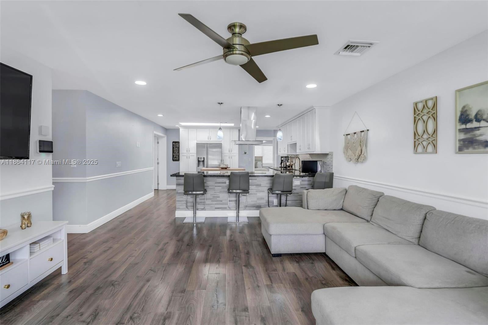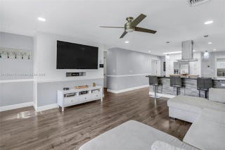 Completely remodeled 3/2 single-family home in the heart of Cooper City w/ NO HOA. This stunning residence features luxury vinyl flooring throughout, impact windows, recessed lighting, & modern zebra blinds for your convenience. The open-concept kitchen boasts sleek stainless-steel appliances, white shaker cabinets, quartz counters, & soft-close drawers. Enjoy a spacious layout w/ two living areas, one perfect for a 4th bedroom, home office, or game room. The master suite offers two walk-in closets & a resort-style bath w/ elegant finishes. Abundant natural light flows through every room. Spacious laundry room in the home for your convenience. The property is fully enclosed with PVC fence for privacy. Full 1 car garage. A covered outdoor patio with ceiling fans, perfect for entertaining.