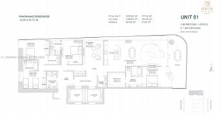 Waterfront sophistication Residence 2901 is a luxury 4-bedroom + office, 5-bath, maid quaters with $100K in designer upgrades. Features include 2 parking spots, custom closets, blinds, and 2 private elevator access. Enjoy panoramic views of Biscayne Bay, the Atlantic and Miami's skyline through floor-to-ceiling windows. Each bedroom has a spa-style en-suite, and the den offers flexible use as an office, media room, or guest space.