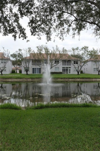 Beautiful 2nd floor home with elevator boost 2 bedrooms and 2 bathrooms + den. This home offers an open floor plan with vaulted ceiling. Enclosed balcony with great view of fountain and lake. New Roof 2023. Recently painted on inside and outside. The Grove offers saltwater pool, fitness center, tennis, pickleball, shuffleboard, bocce, putting green and billiards in newly renovated clubhouse. 24-hour manned gate in this over 55 community.