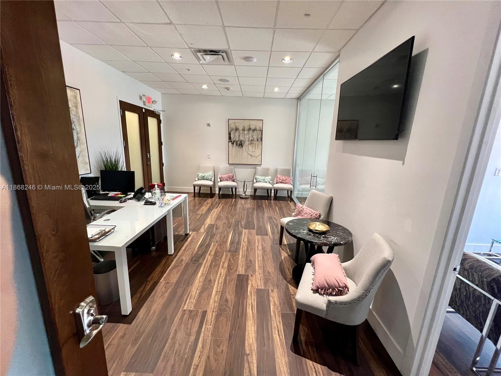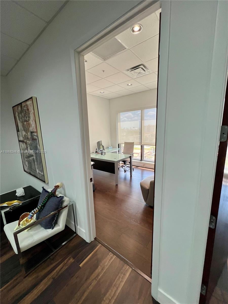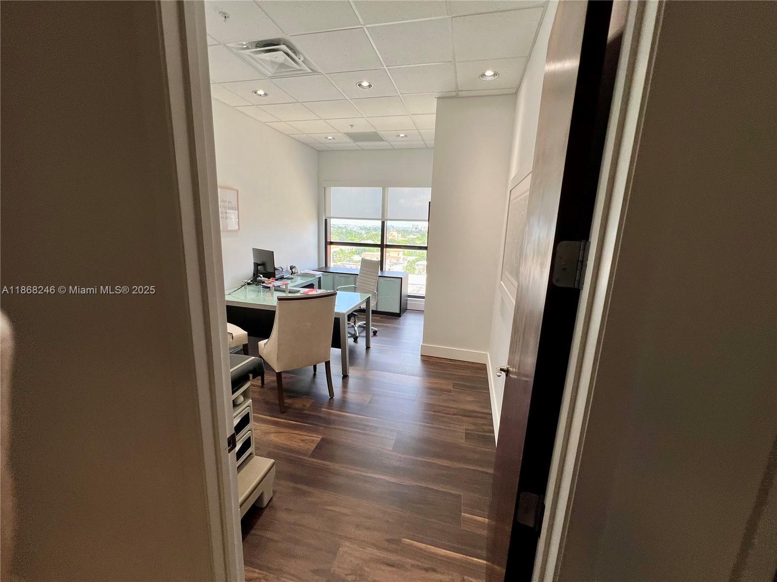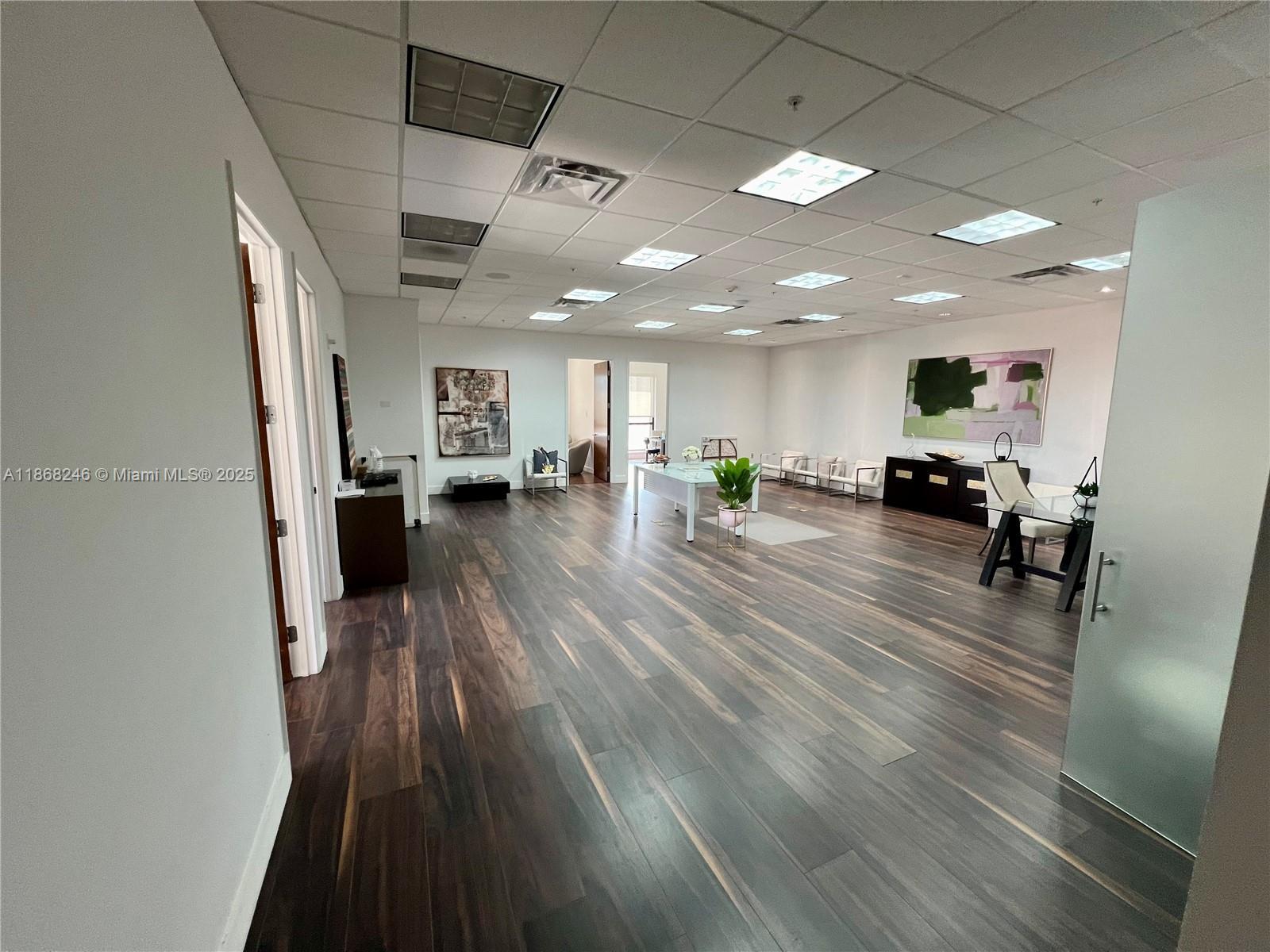 Two combined units totaling 3314 SF feature new wood laminated floors, 9.5 ft tall ceilings, and a large balcony overlooking Coral Gables. The entrance lobby boasts high-tech security, soaring ceilings, imported marble, and stainless steel finishes. The space includes a kitchen, private bathroom, 7 executive offices, and an open center area accommodating 10 to 15 employees. Additional features include a reception area, conference room, and convenient location in the heart of Coral Gables near dining, entertainment, and major Miami destinations. The building offers column-free floor plates, wrap-around balconies with Miami skyline views, contemporary lobby with ground floor retail, concierge, 24-hour security, on-site management, and pre-wired technology capabilities.