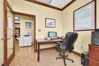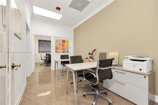 Outstanding opportunity to acquire 2 adjacent, fully built-out offices. While currently separated, these units can be easily combined to create a larger, cohesive workspace. The space is designed with upscale finishes throughout, featuring elegant waiting areas, well-appointed conference rooms, and multiple private offices. Each unit is equipped with its own separate AC unit. Units boast drop ceilings and impact-resistant windows. This offering also includes seven premium-covered parking spaces located on the 2nd floor, providing excellent accessibility. This property is fully finished and designed with an upscale professional image.Ideal for future growth or expansion for a business. Prime location for any business seeking a prestigious office presence