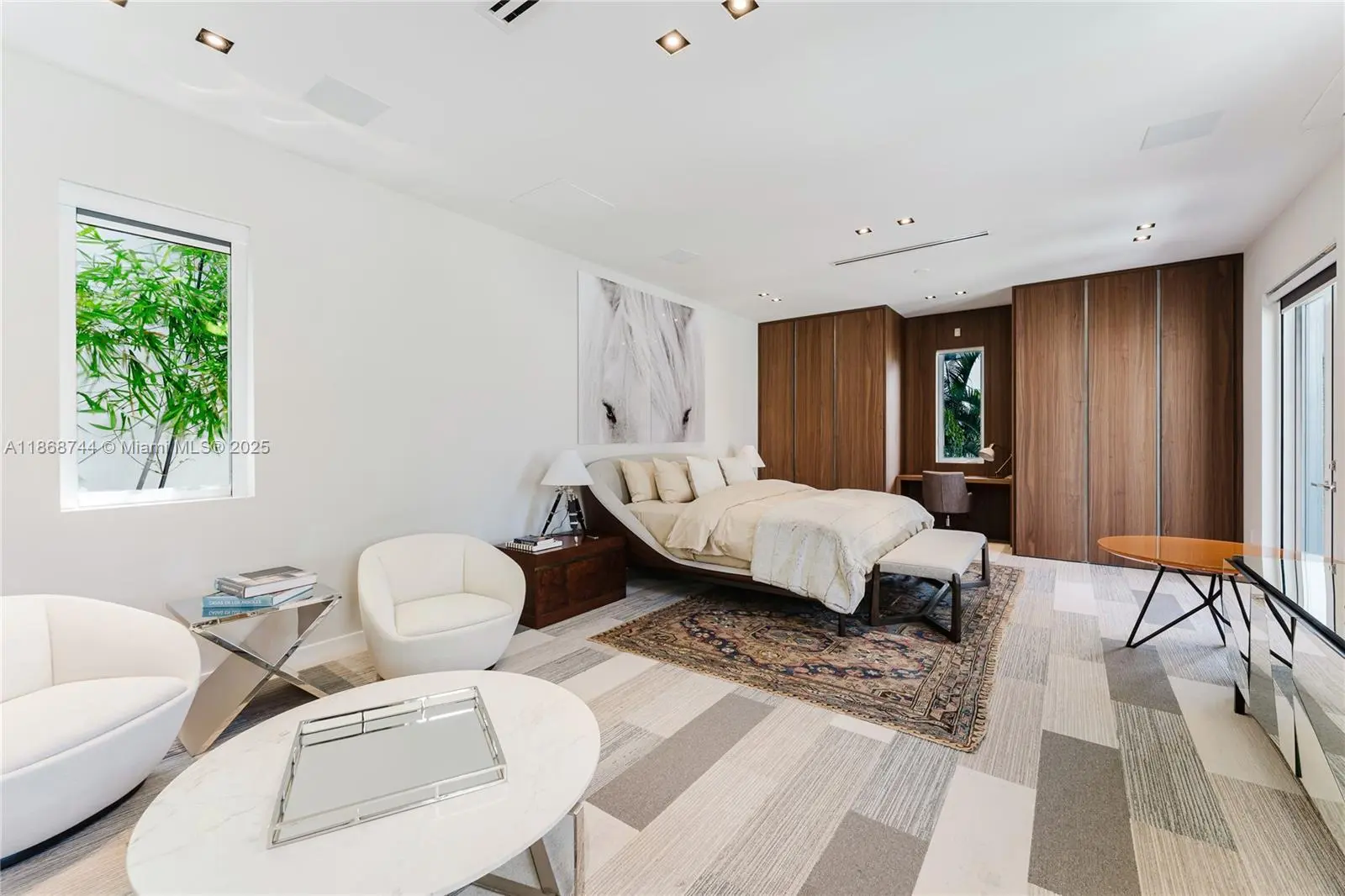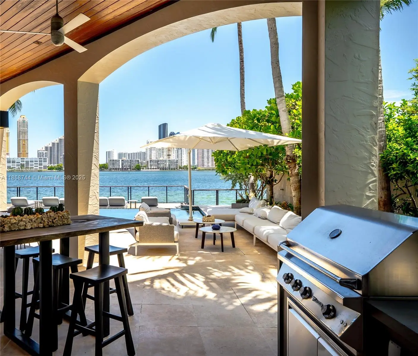 Turnkey waterfront estate in exclusive private island community of Island Estates, Aventura. 6BR + staff residence fully furnished with Italian designer furniture, luxury décor, curated art and sculptures. Dramatic double-height ceilings, expansive glass, chef’s kitchen, formal dining, and elegant entertaining areas. Outdoor resort lifestyle with heated pool, Jacuzzi, summer kitchen, and lush landscaping overlooking the Intracoastal. Optional dock, 50ft or 120ft, with direct Haulover Inlet access. Lease includes weekly housekeeping, pool & garden service, high-speed internet, cable, and house manager. Residents enjoy 24/7 security and world-class amenities: two pro gyms, spa, restaurant, lounges, business center, and more. Available Oct 2025, minimum lease 6 months.
