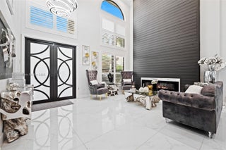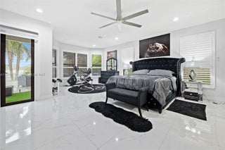 Stunning 6BD/4.5BA lakefront estate where no expense was spared in the remodel. This home features sleek porcelain floors, designer finishes, custom closets, and a spa-inspired primary suite with freestanding tub & oversized shower. Light-filled living spaces flow seamlessly into a gourmet kitchen and private gym area. Outdoors, enjoy a resort-style pool, covered pergola with full summer kitchen & bar, perfect for entertaining or watching the big game. Expansive lake views create the ultimate South Florida lifestyle. We have the perfect space for you in-laws ; The garage is beautifully converted into a bedroom and massive closet but can very easily be converted back to a 3 car garage. Enjoy lower energy cost with solar panels owned by the seller that will transfer to the new buyer.